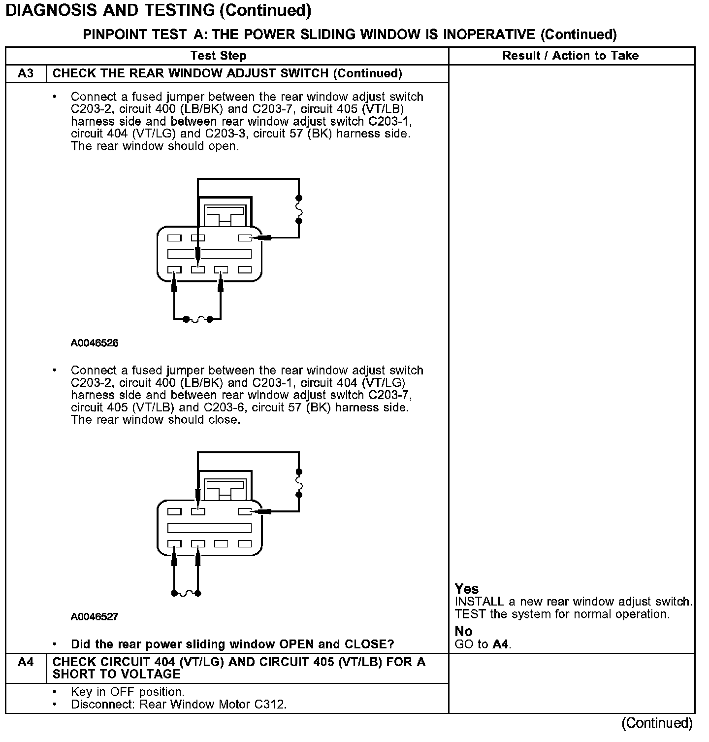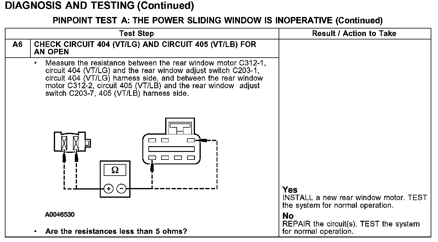 PINPOINT TEST A: THE POWER SLIDING WINDOW IS INOPERATIVE