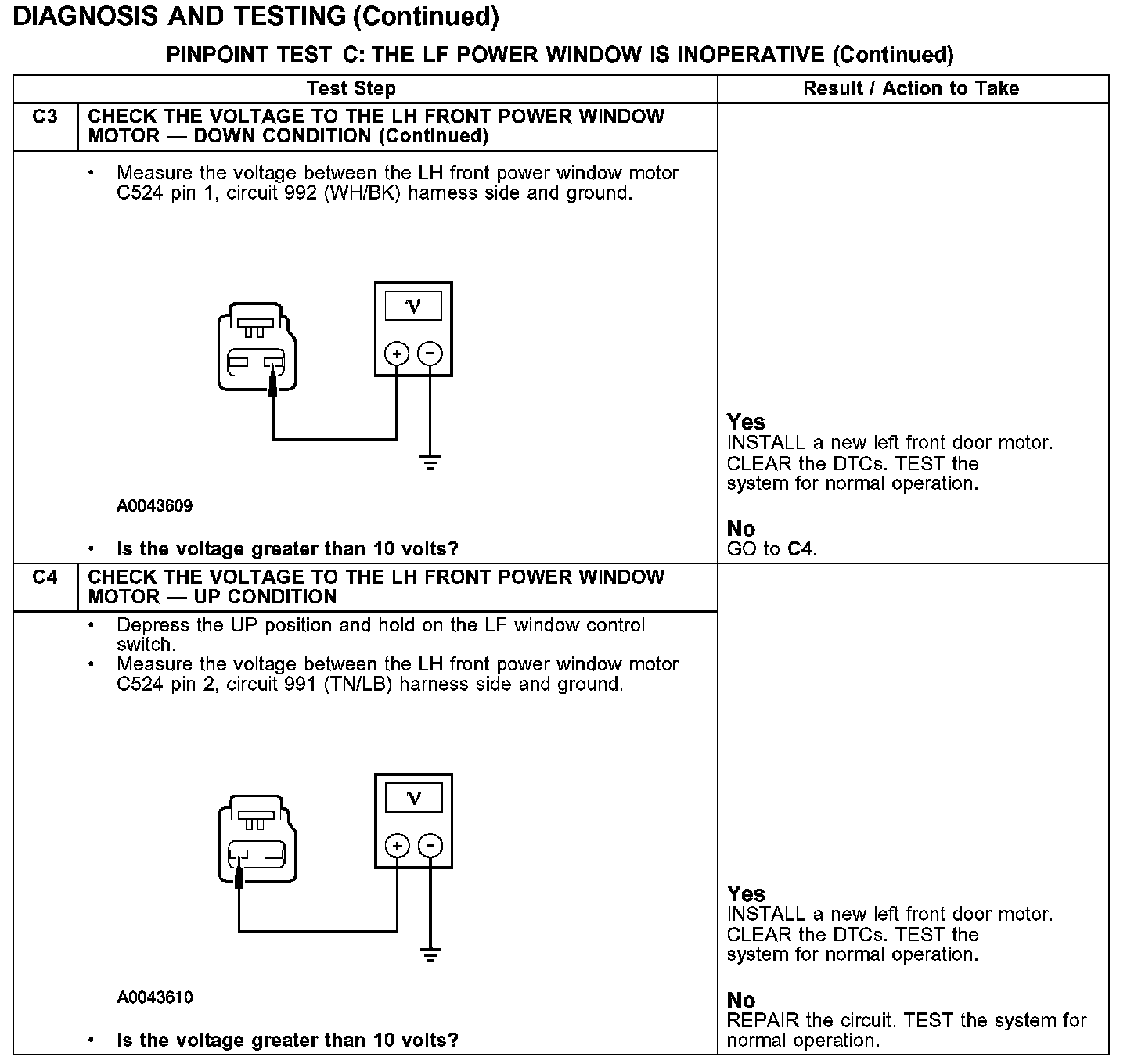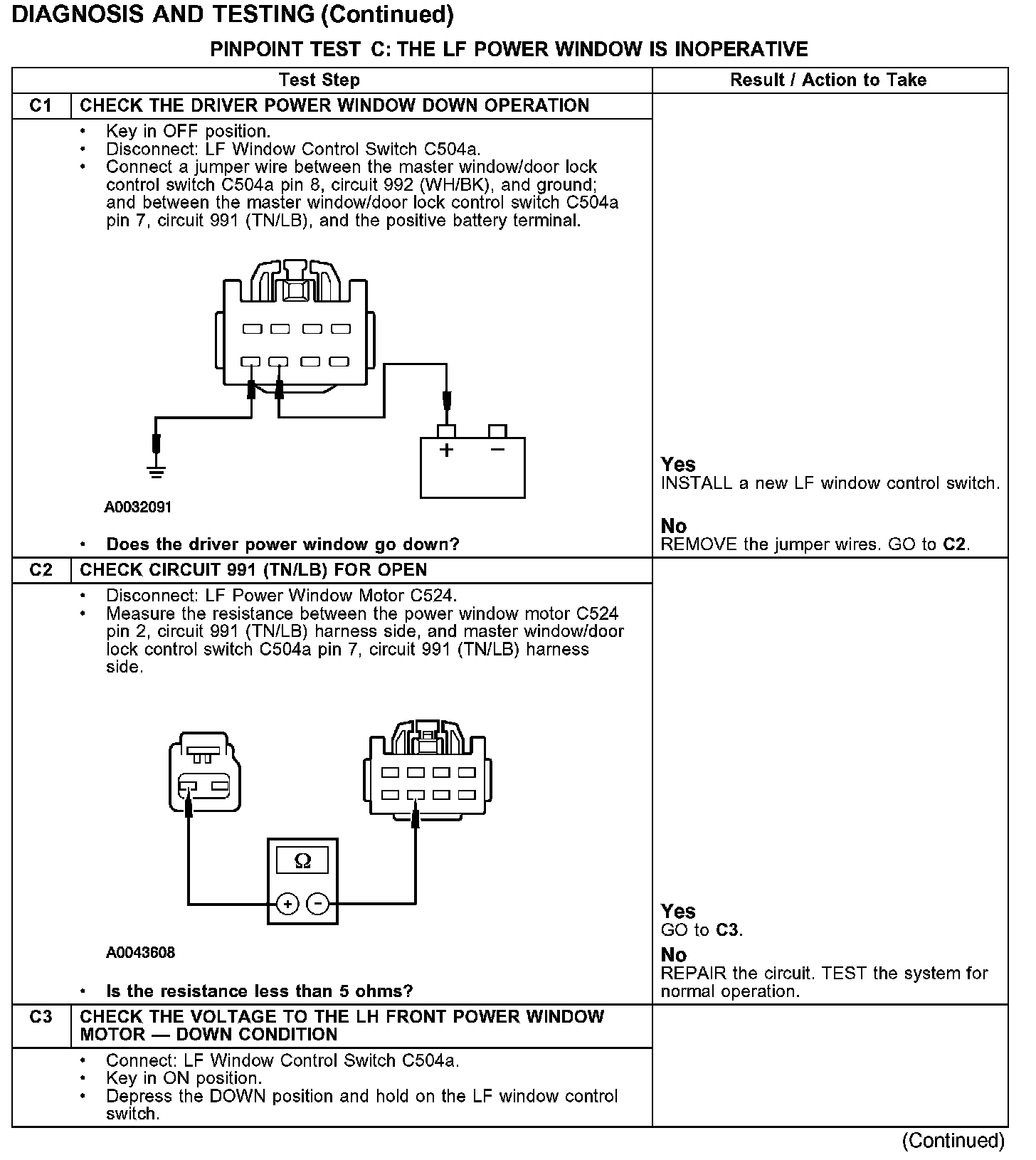 PINPOINT TEST C: THE LF POWER WINDOW IS INOPERATIVE