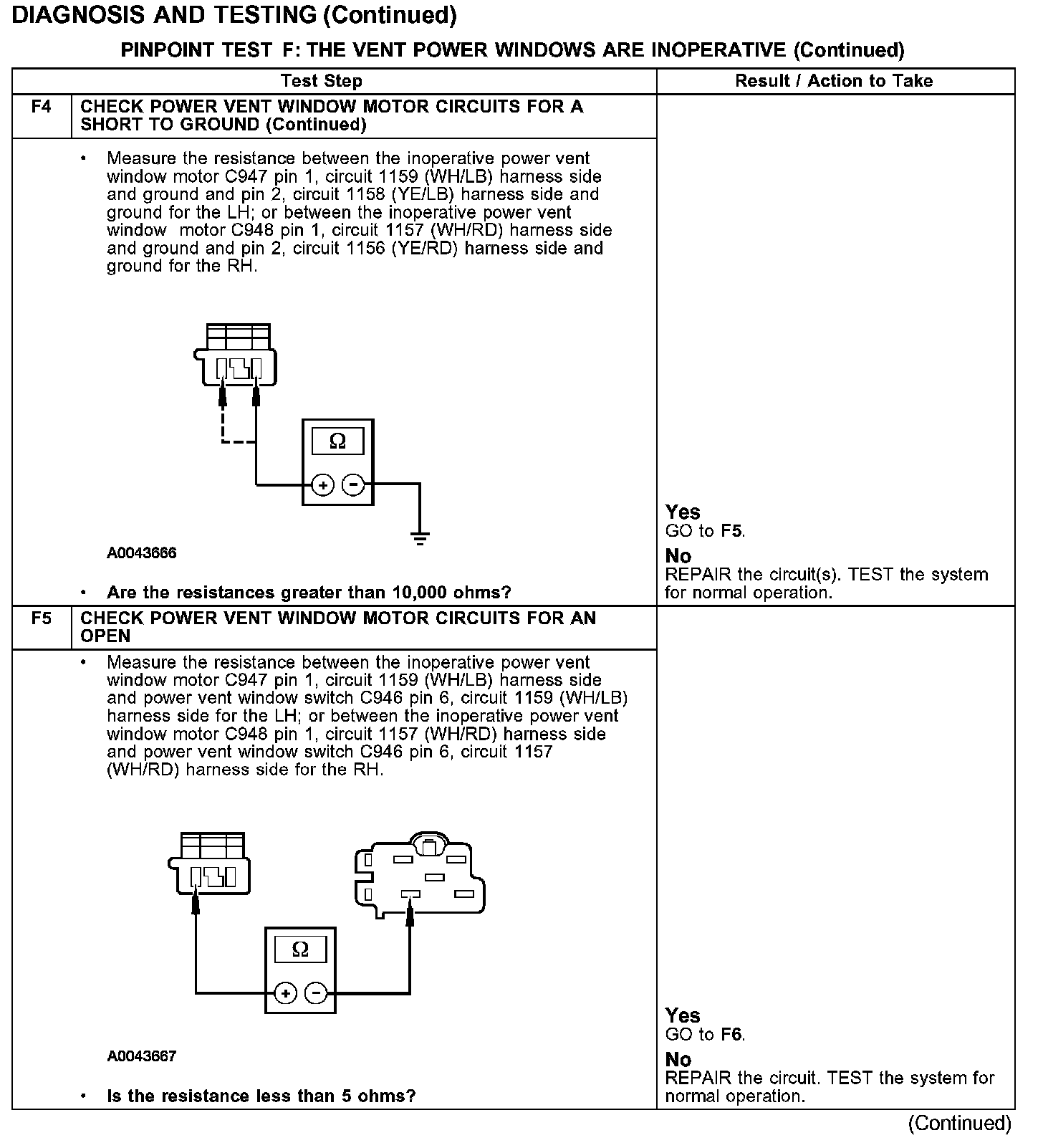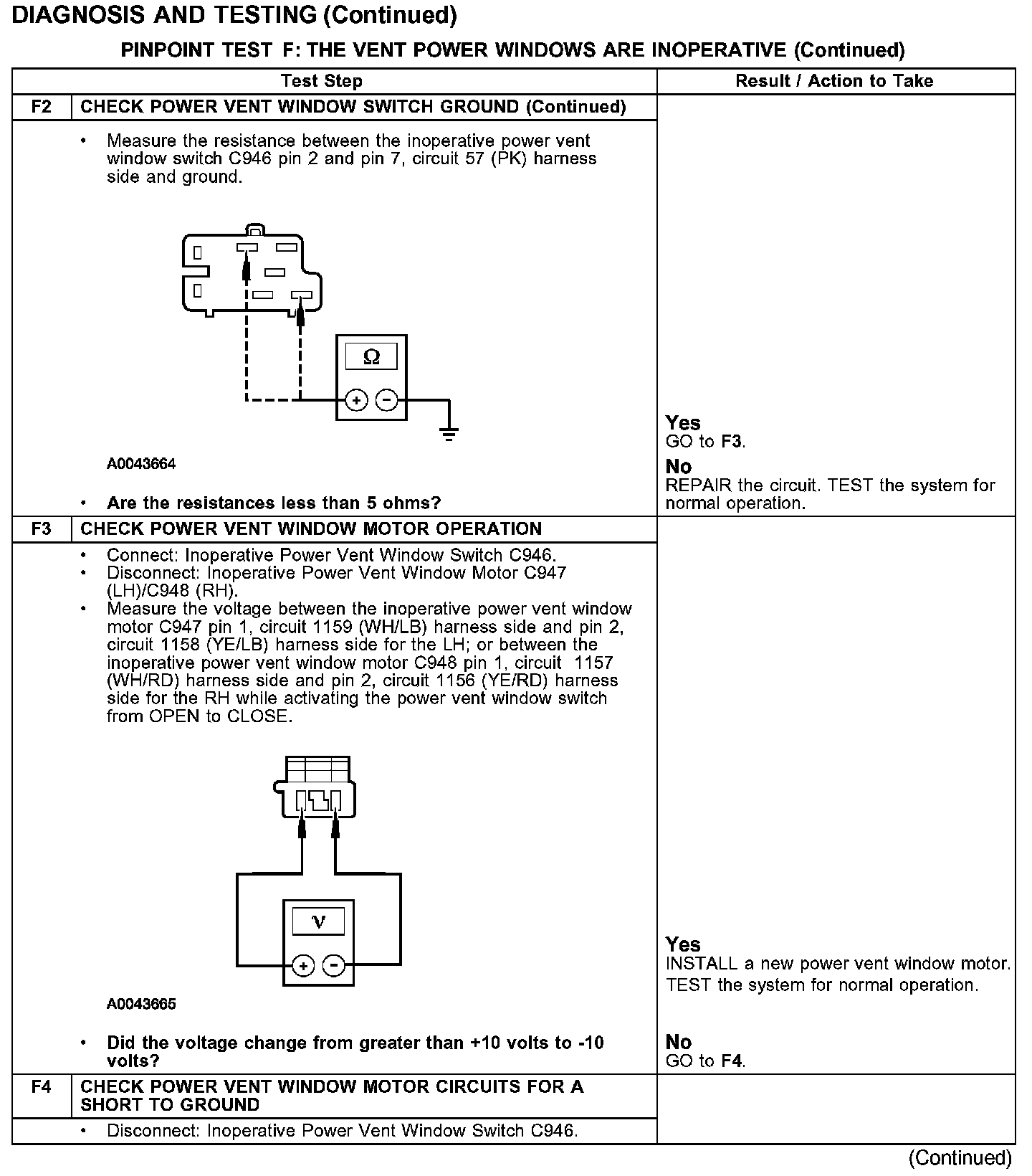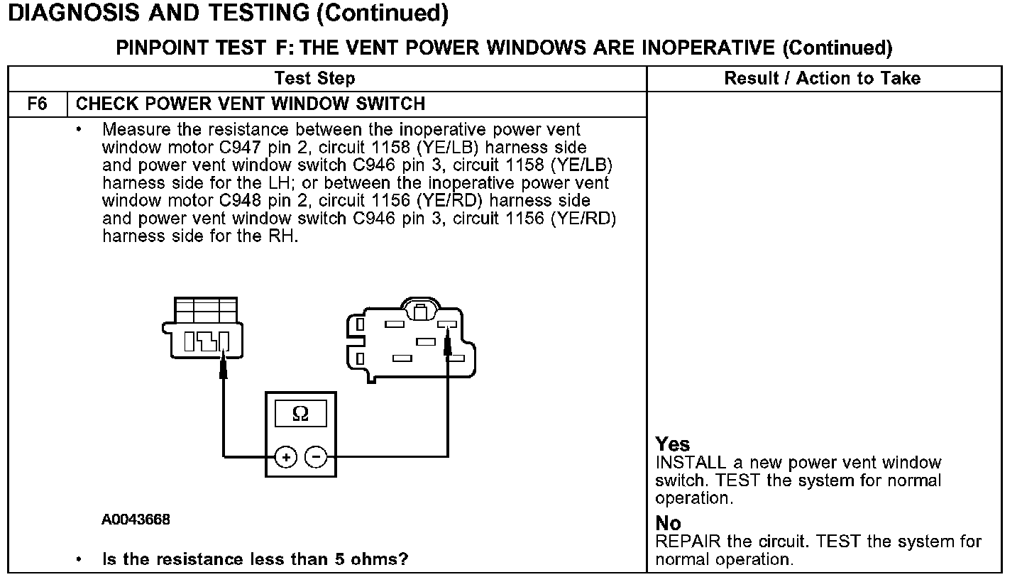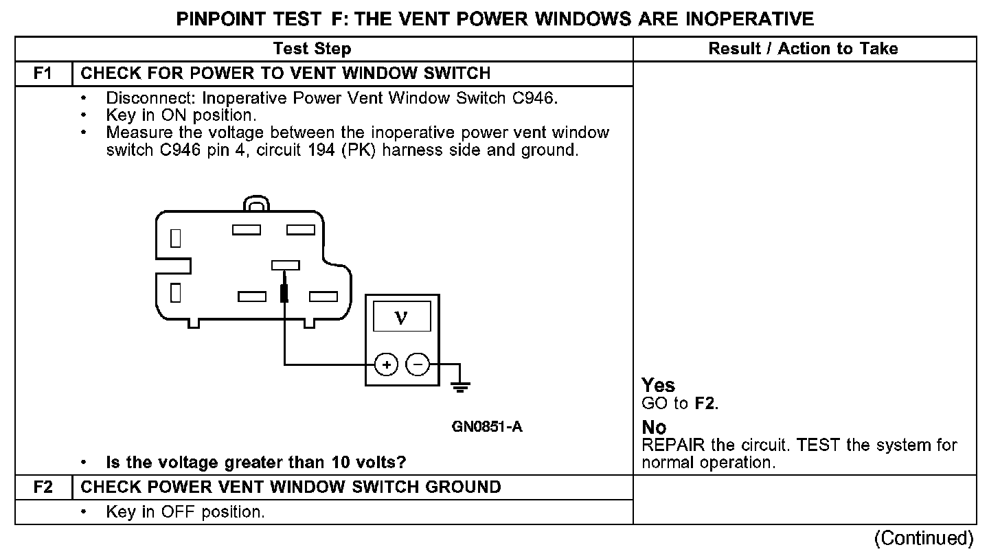 PINPOINT TEST F: THE VENT POWER WINDOWS ARE INOPERATIVE