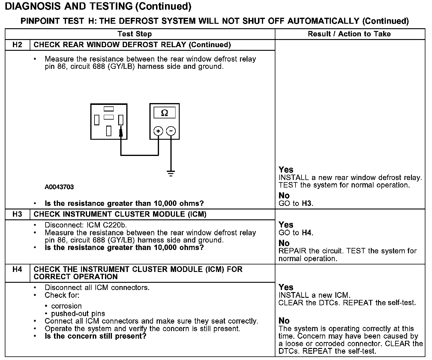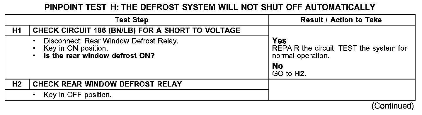 PINPOINT TEST H: THE DEFROST SYSTEM WILL NOT SHUT OFF AUTOMATICALLY