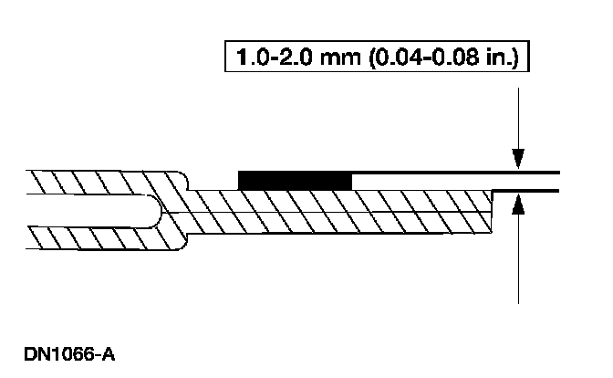 Apply a uniform 11-mm (0.43-inch) bead of Essex 400 HV Urethane High Viscosity Adhesive, Ford specification WSB-M2G316-B, on top of the existing trimmed urethane bead on the pinchweld.
