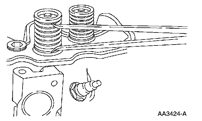 ^ Turn the valve spring and observe the space between the top of the valve spring and the square. Install a new valve spring if out of square.
