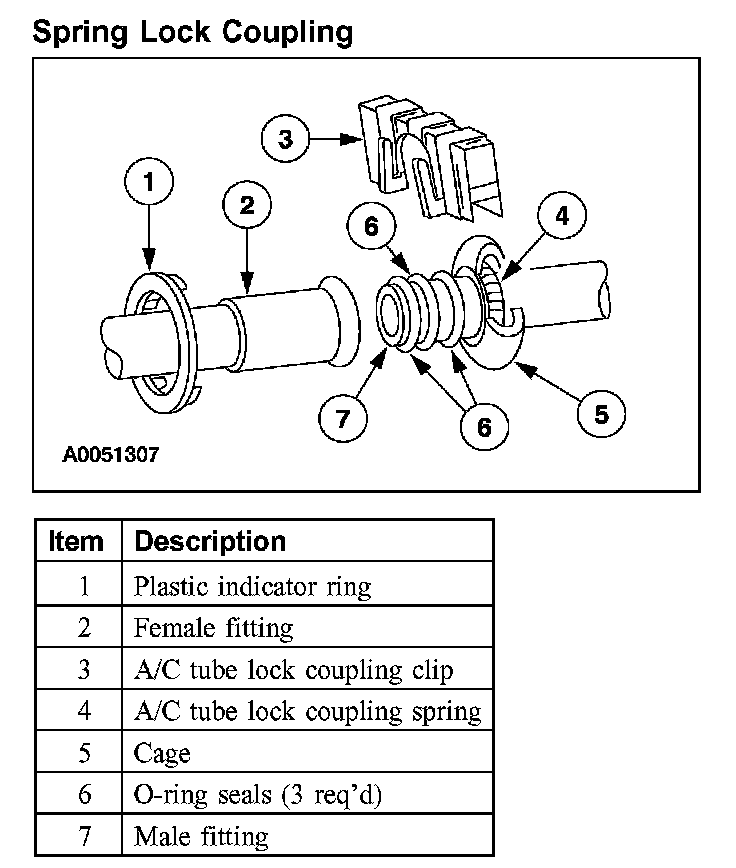 - An A/C tube lock coupling clip may be used to secure the coupling but is not required.
