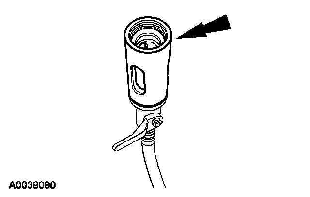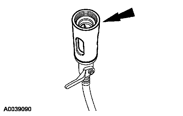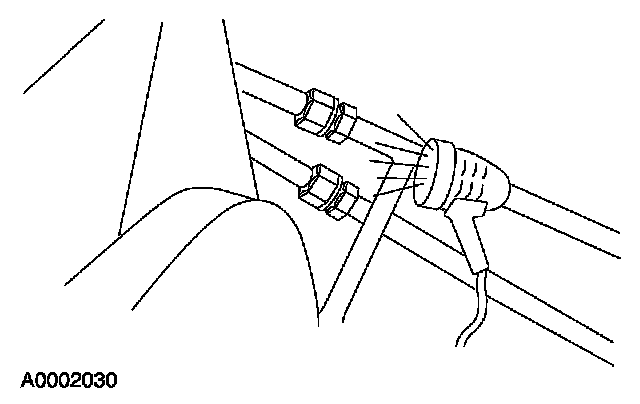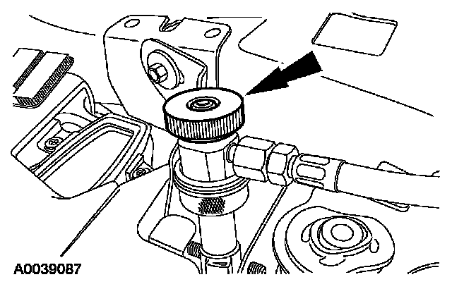 8. Remove the fluorescent dye injector from the low-pressure service gauge port valve and the R-134a A/C refrigerant service center or manifold gauge set.