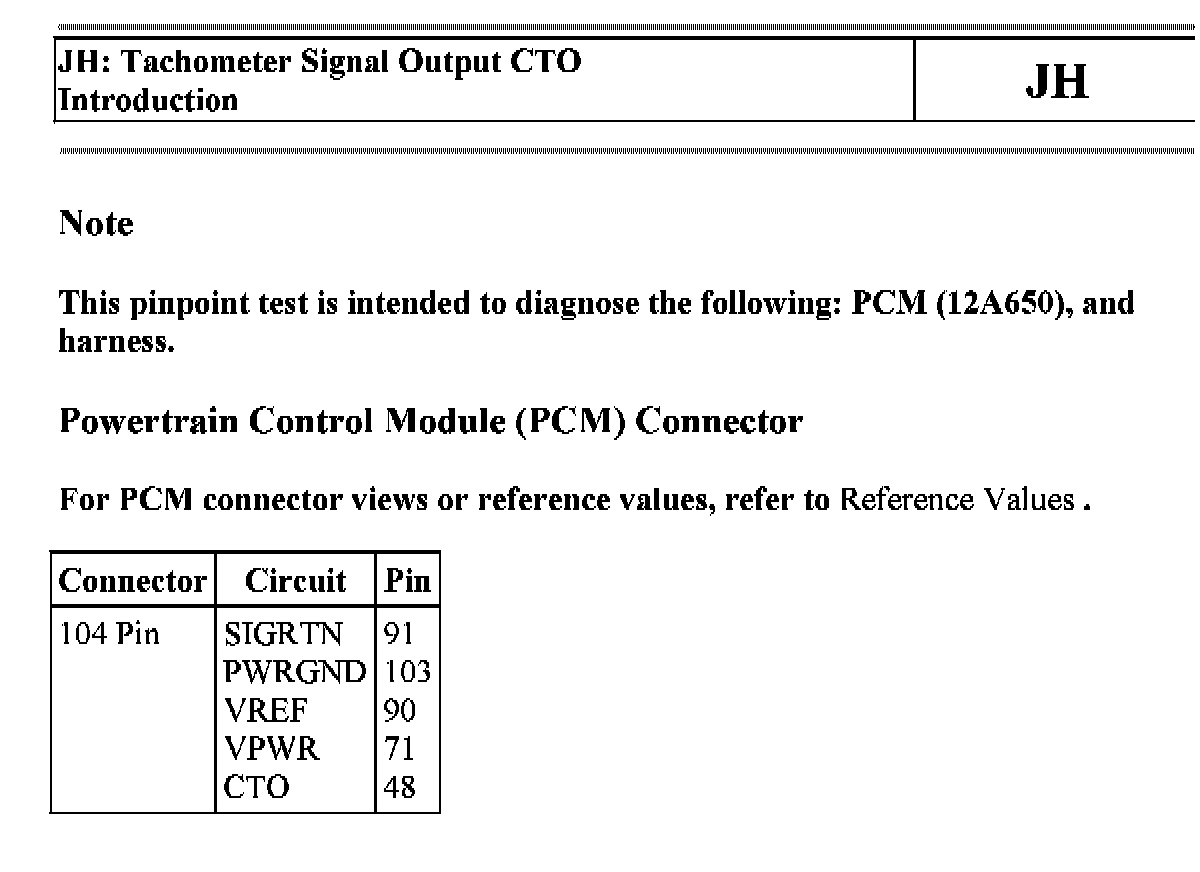 PINPOINT TEST JH: TACHOMETER SIGNAL OUTPUT CTO