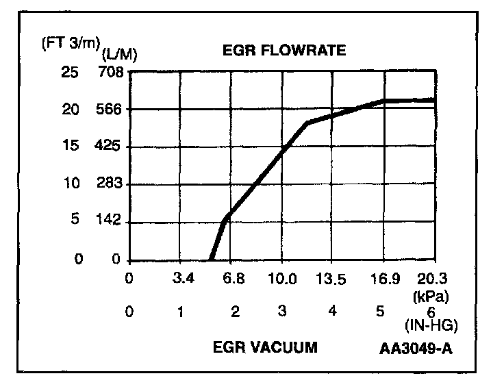 Since EGR flow requirement varies greatly, providing service specifications on flow rate is impractical. The on-board diagnostic system monitors the EGR valve function and triggers a Diagnostic Trouble Code if the test criteria is not met. The EGR valve flow rate is not measured directly as part of the field diagnostic procedures.