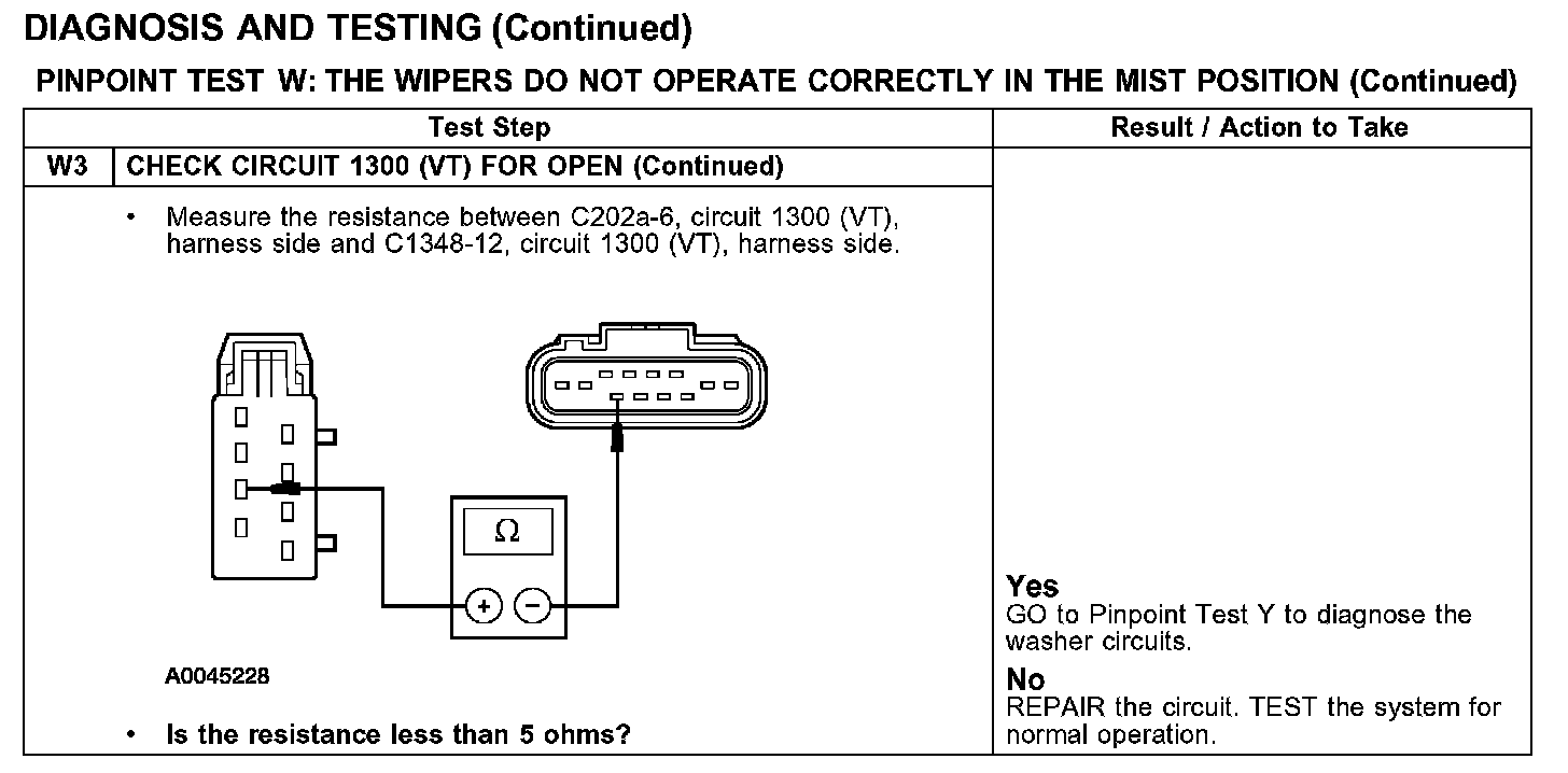 PINPOINT TEST W: THE WIPERS DO NOT OPERATE CORRECTLY IN THE MIST POSITIONTest W1-W3: