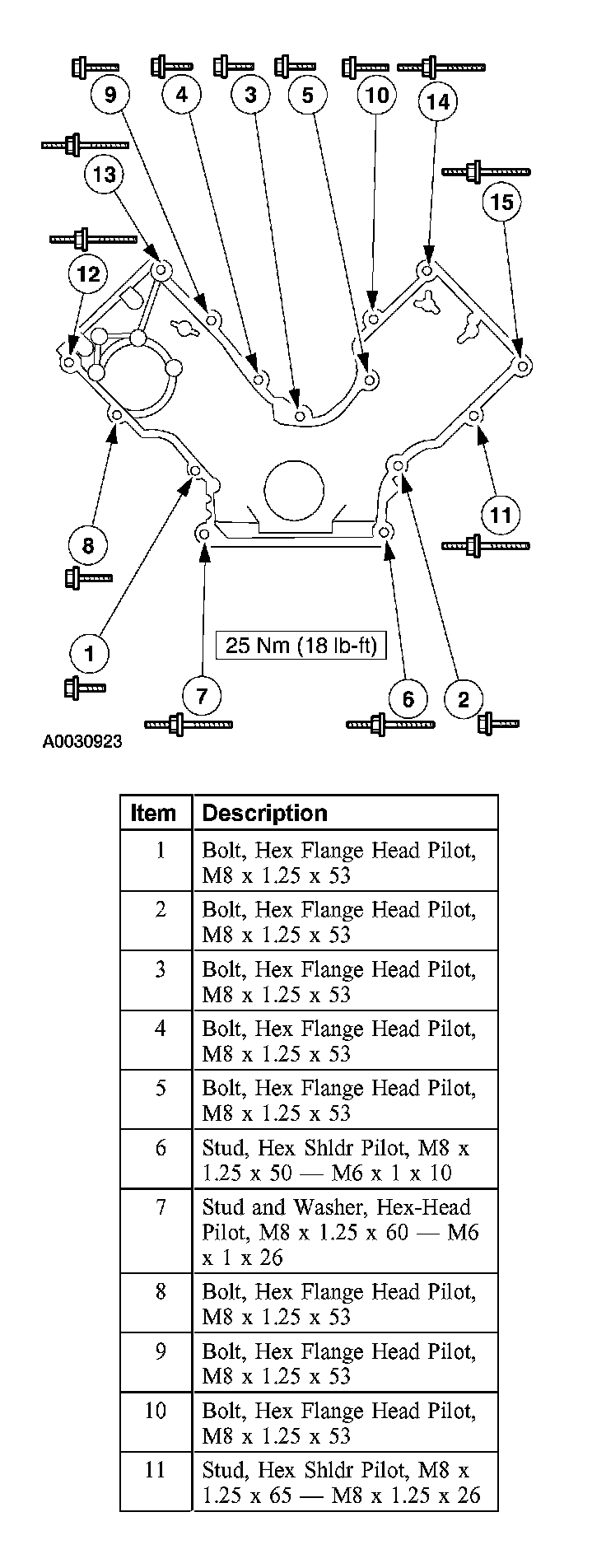 Engine front cover bolts 25 Nm (18 ft. lbs.)Crankshaft Pulley Bolt