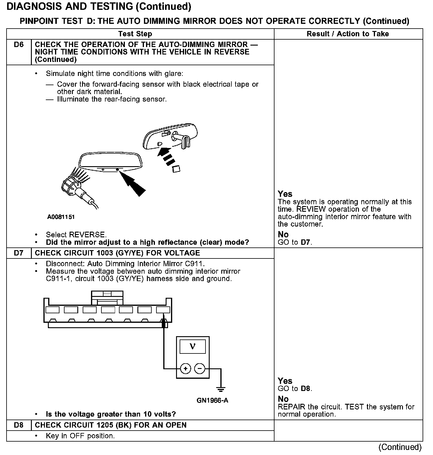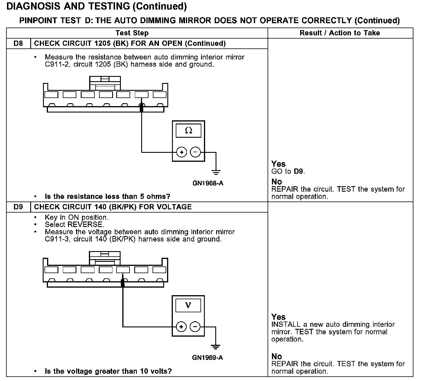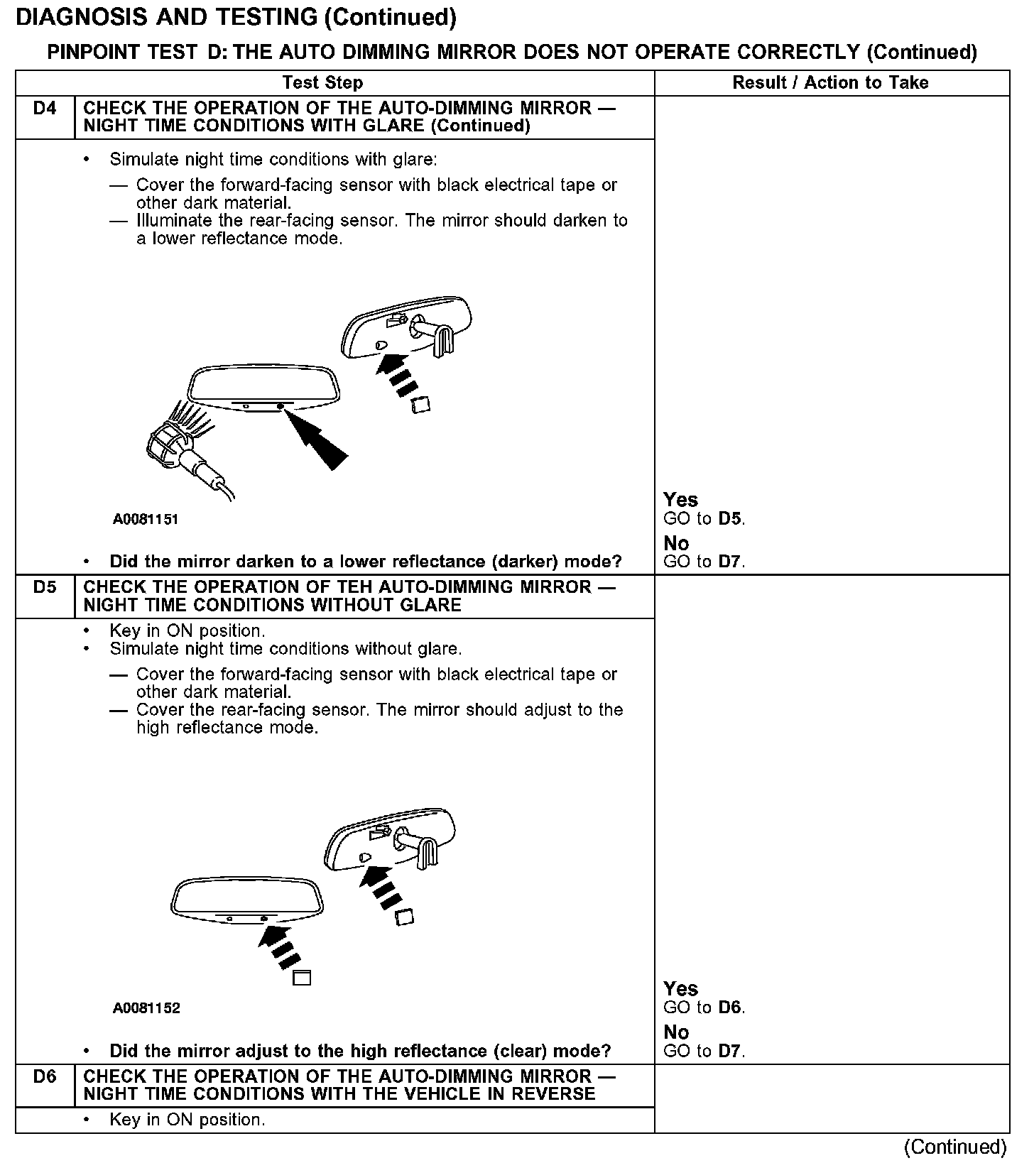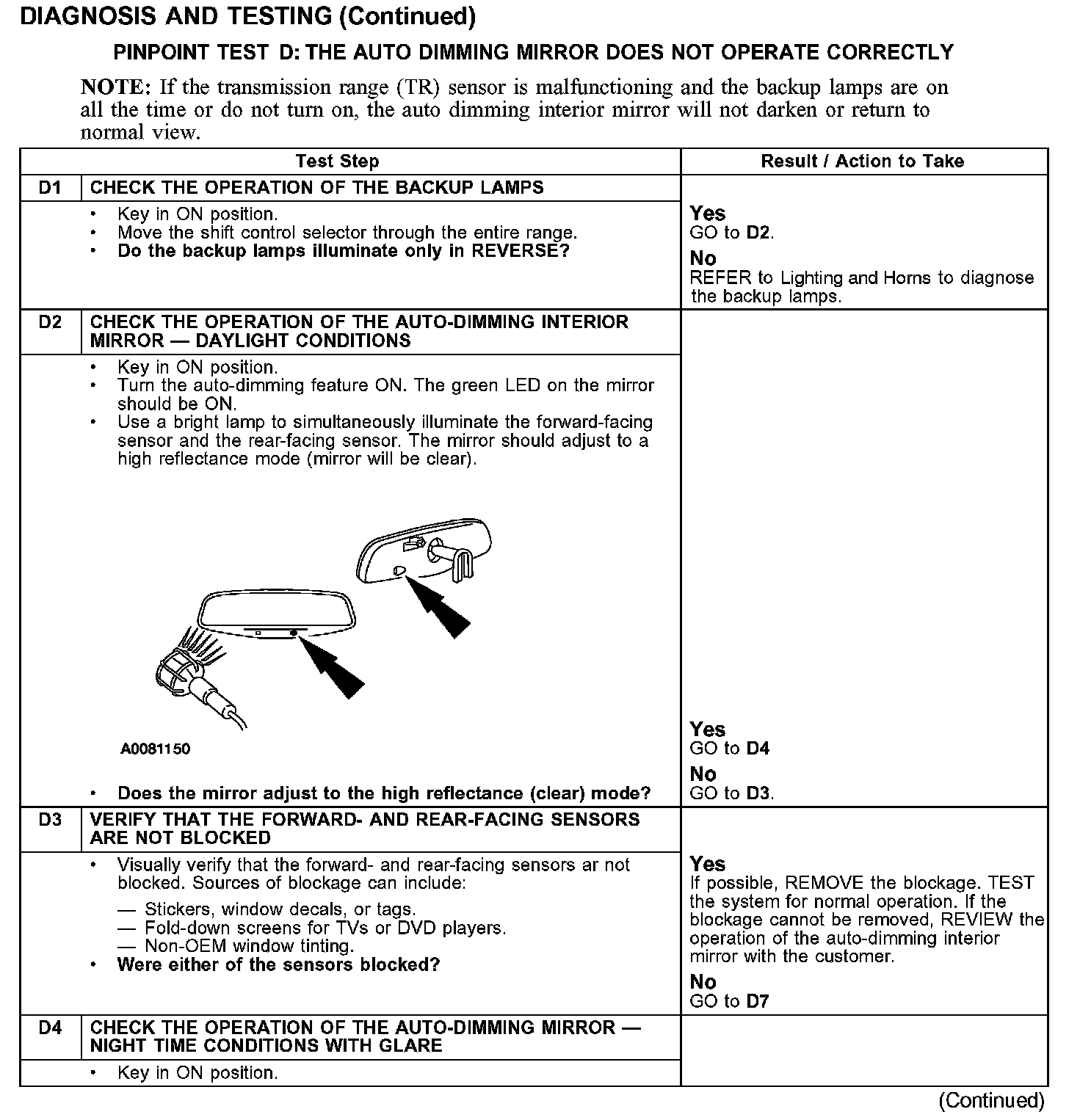 PINPOINT TEST D: THE AUTO DIMMING MIRROR DOES NOT OPERATE CORRECTLYTest D1-D4: