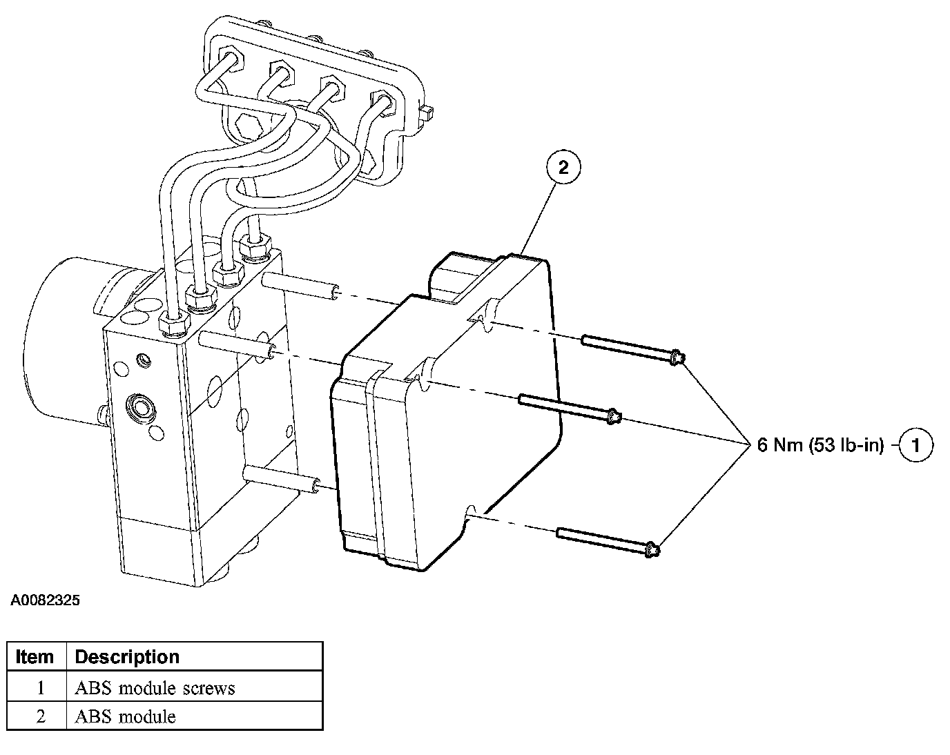 NOTE: When installing a new ABS module, it must be configured (using vehicle as-built data) and calibrated. Follow the diagnostic tool directions for the configuration and calibration procedures.