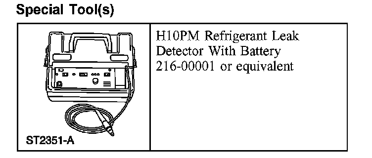 Leak test the refrigerant system using the Refrigerant Leak Detector. Follow the instructions included with the leak detector for handling and operation techniques.