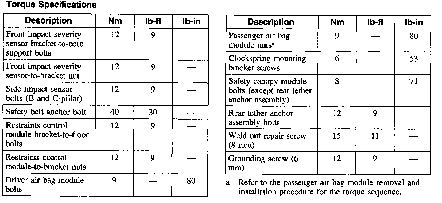 Air Bag Systems: Specifications