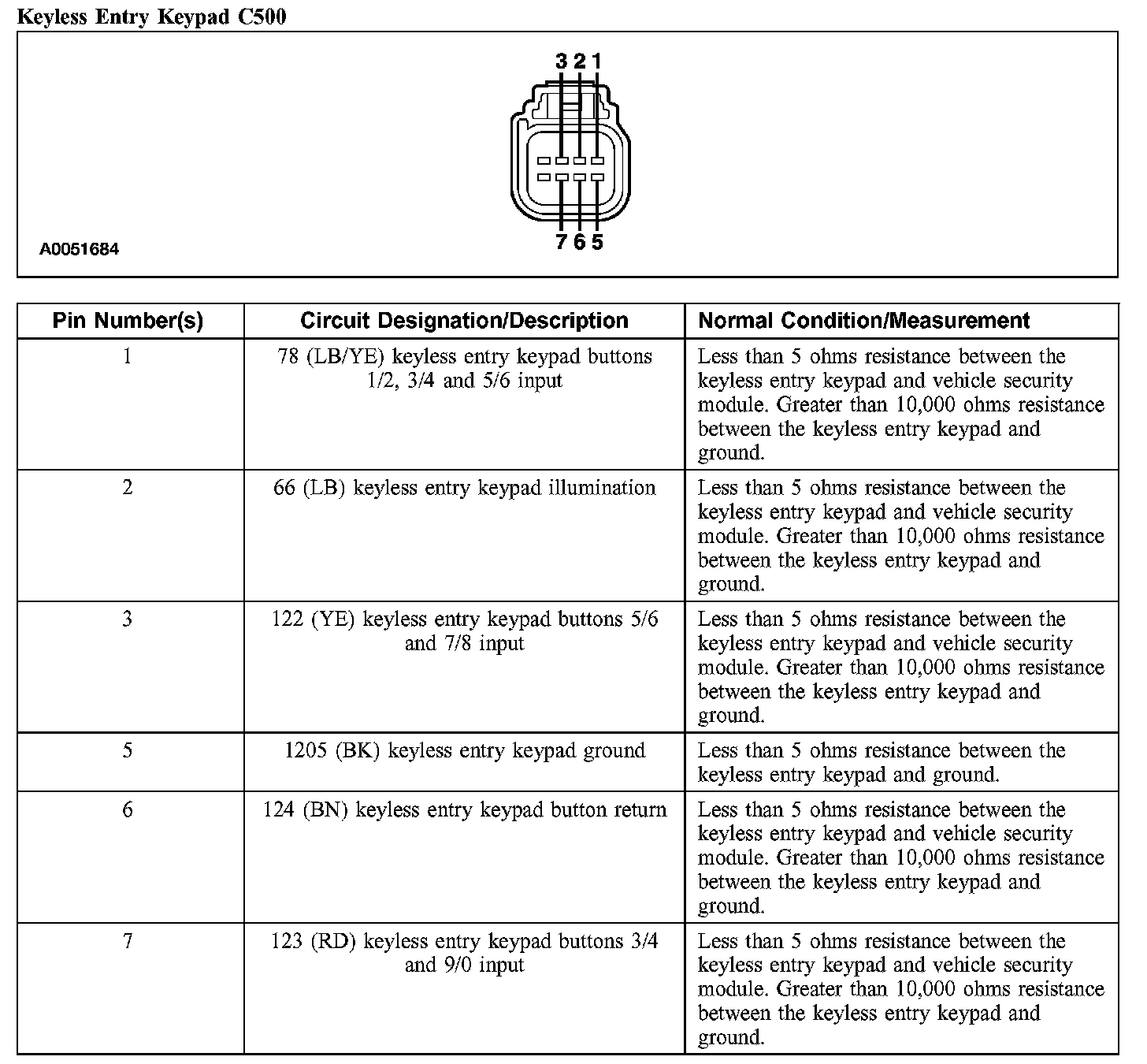 Keyless Entry Keypad C500:
