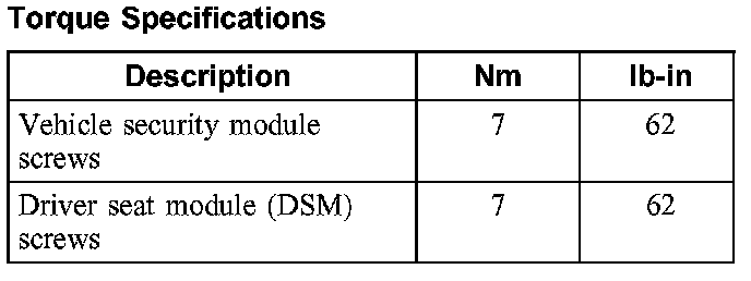 Torque Specifications: