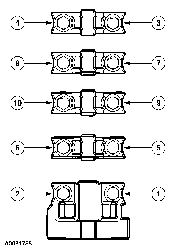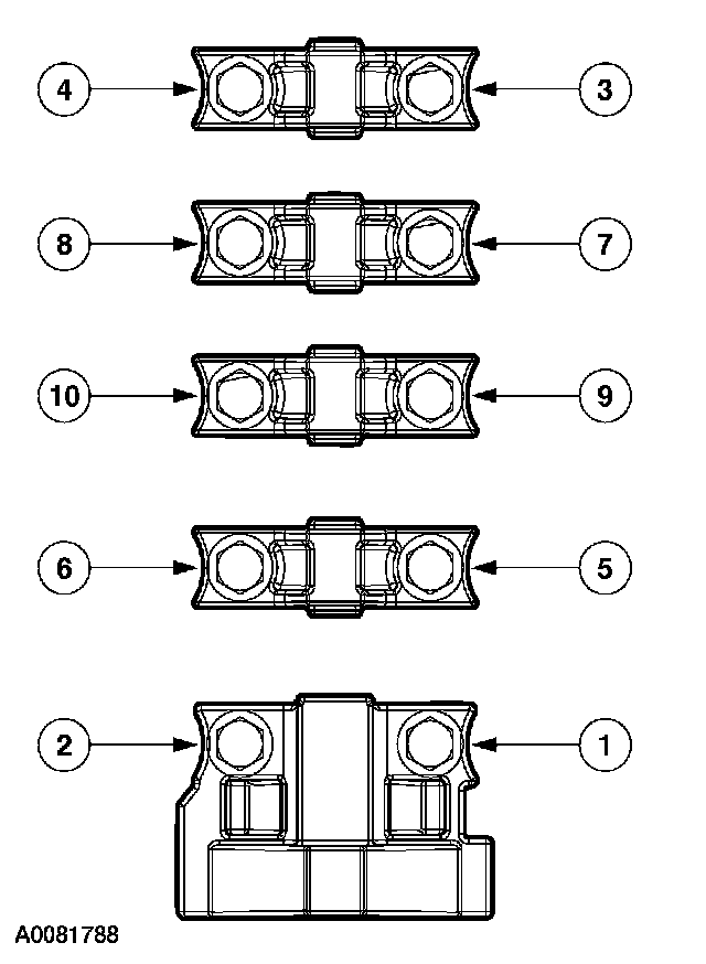 RH Camshaft Bearing Cap Bolts 10 Nm (89 inch lbs.)