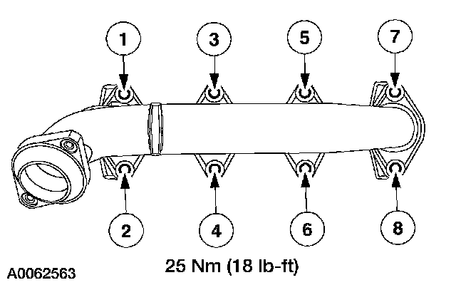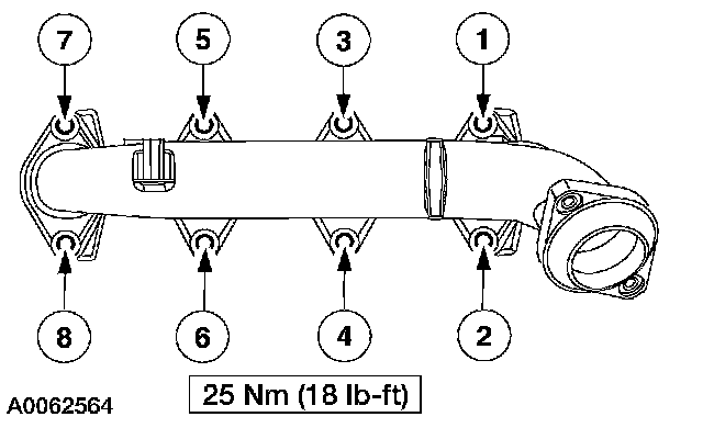 LH Exhaust Manifold Bolts 25 Nm (18 ft lbs.)