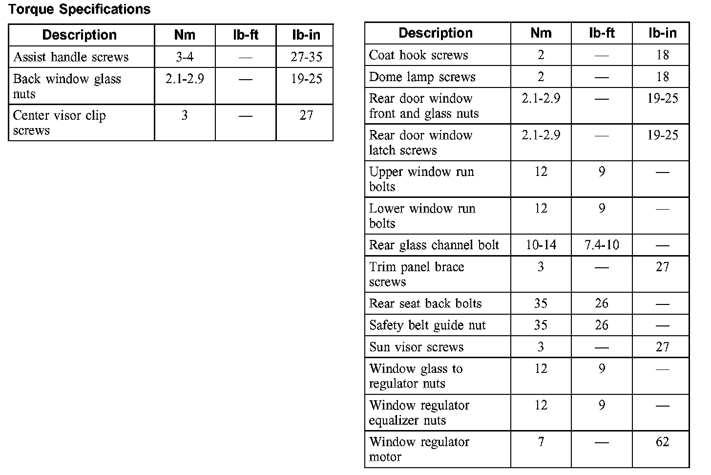 Torque Specifications: