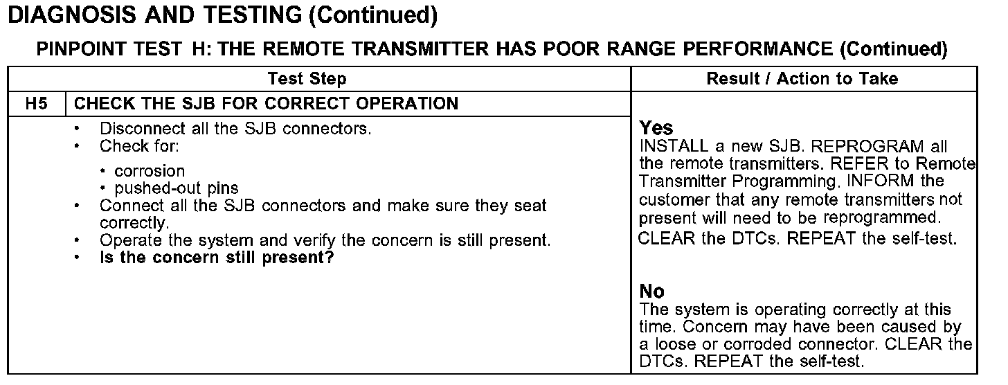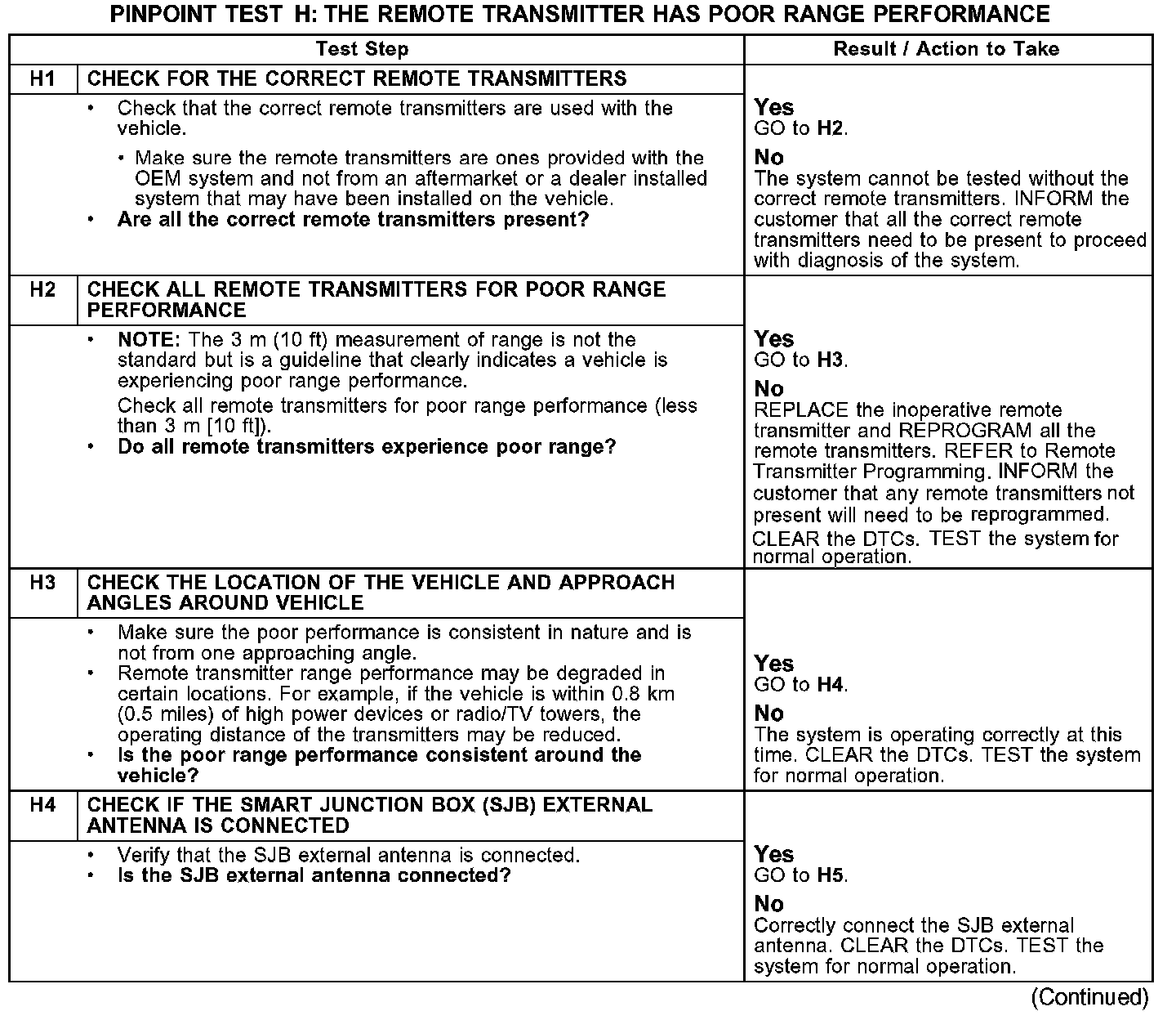PINPOINT TEST H: THE REMOTE TRANSMITTER HAS POOR RANGE PERFORMANCETest H1-H4:
