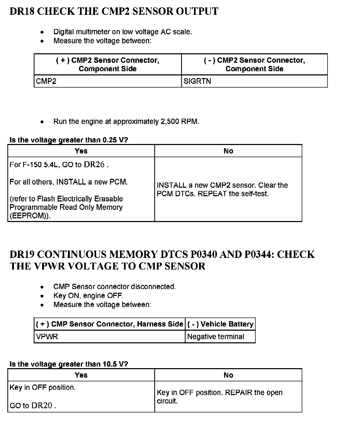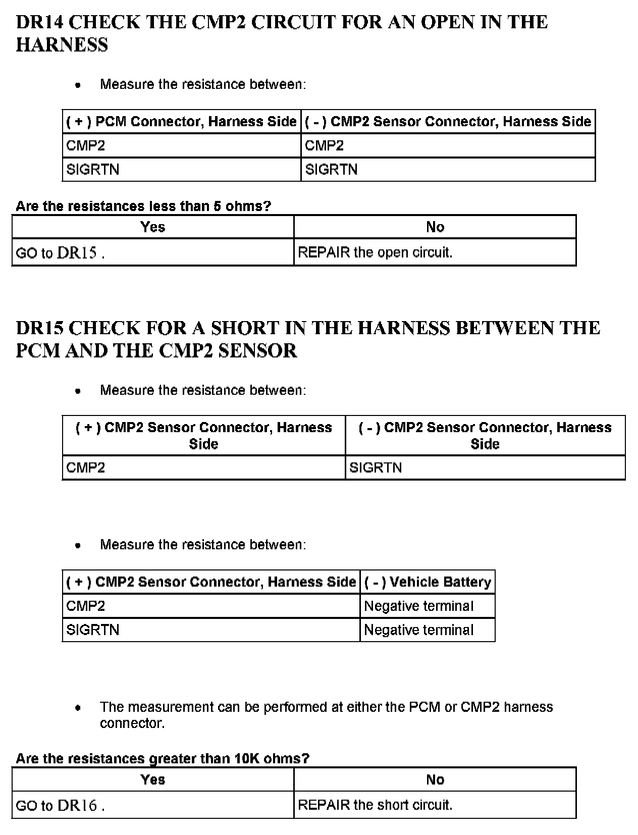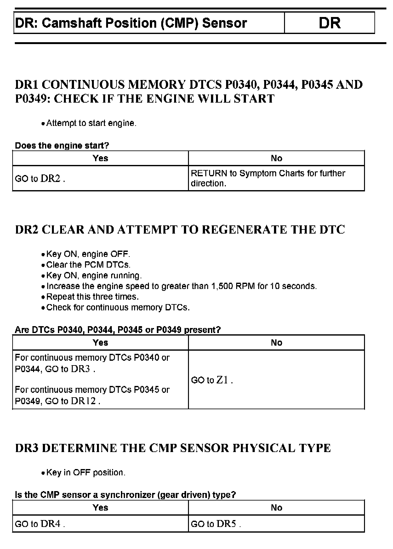 Tests DR: Camshaft Position (CMP) Sensor