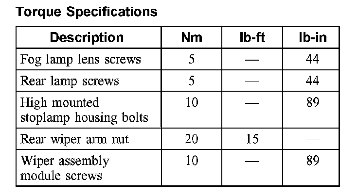 Torque Specifications: