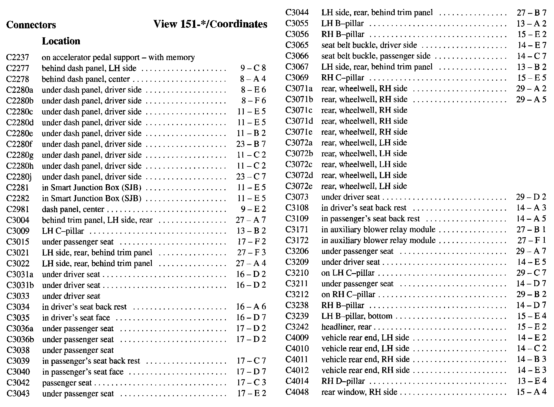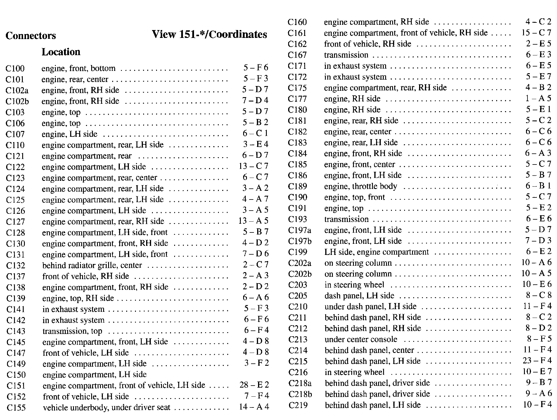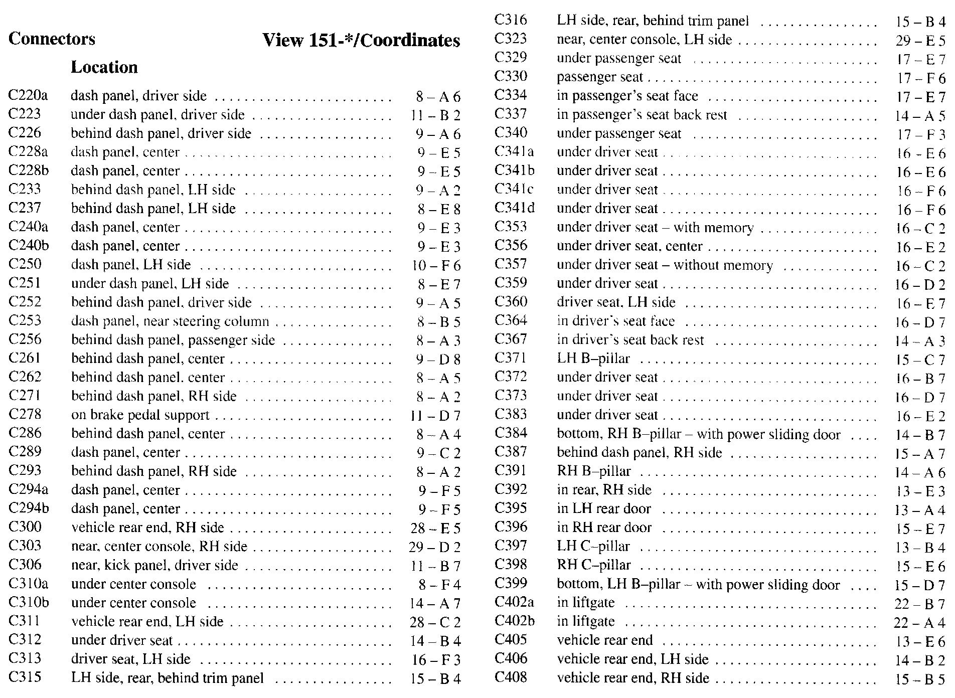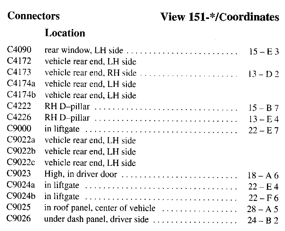 PLEASE NOTE: If a link on the Connector Location Index to a View is not provided, that means that the Connector and/or View in question does NOT apply to the vehicle model selected.