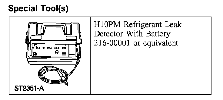 Leak test the refrigerant system using the Refrigerant Leak Detector. Follow the instructions included with the leak detector for handling and operation techniques.