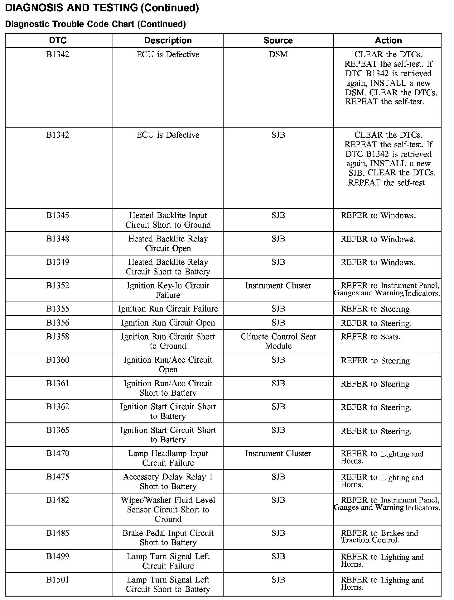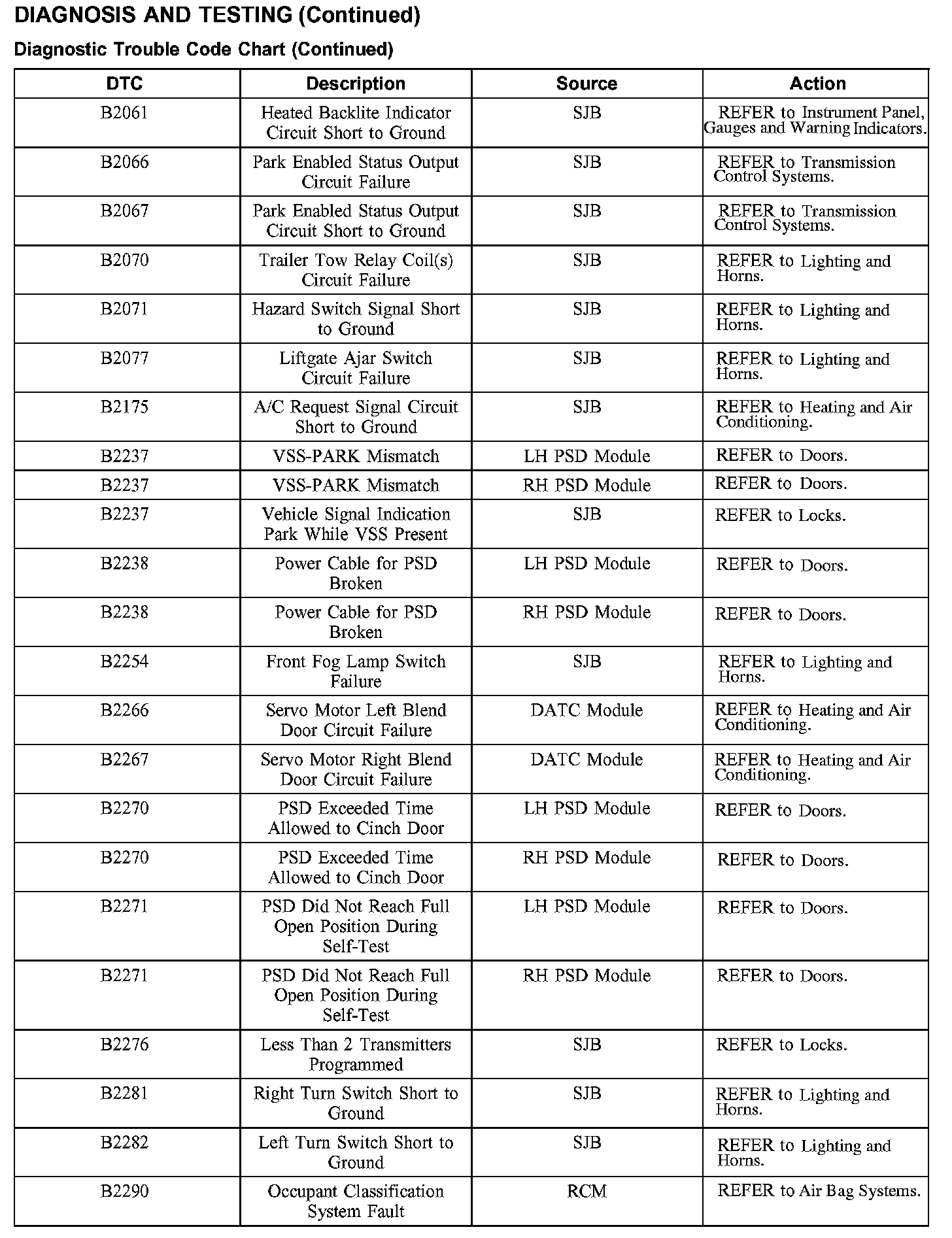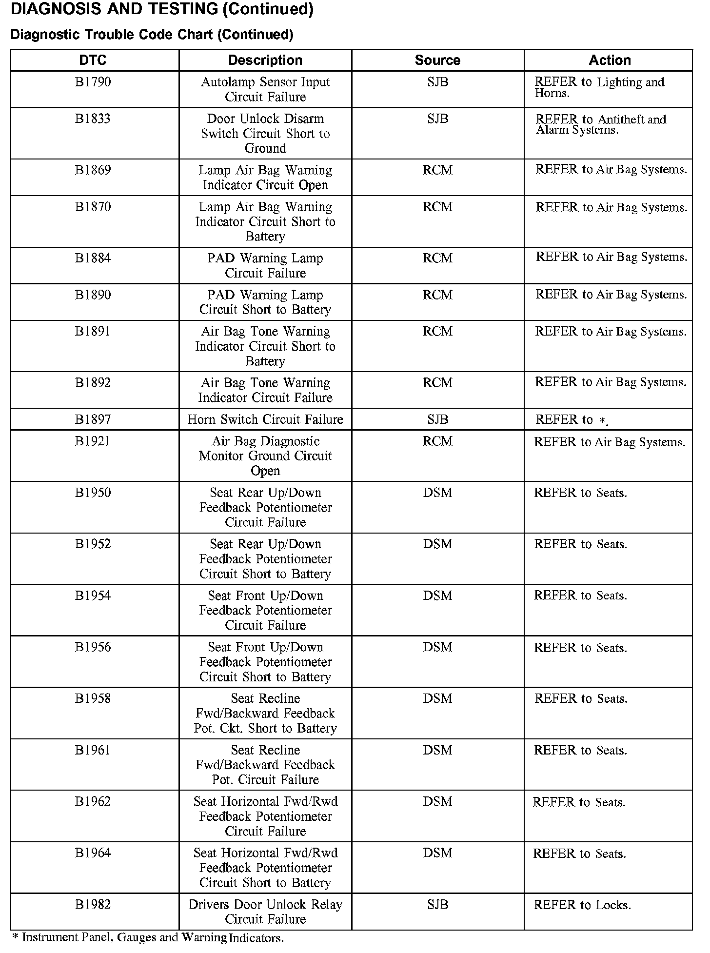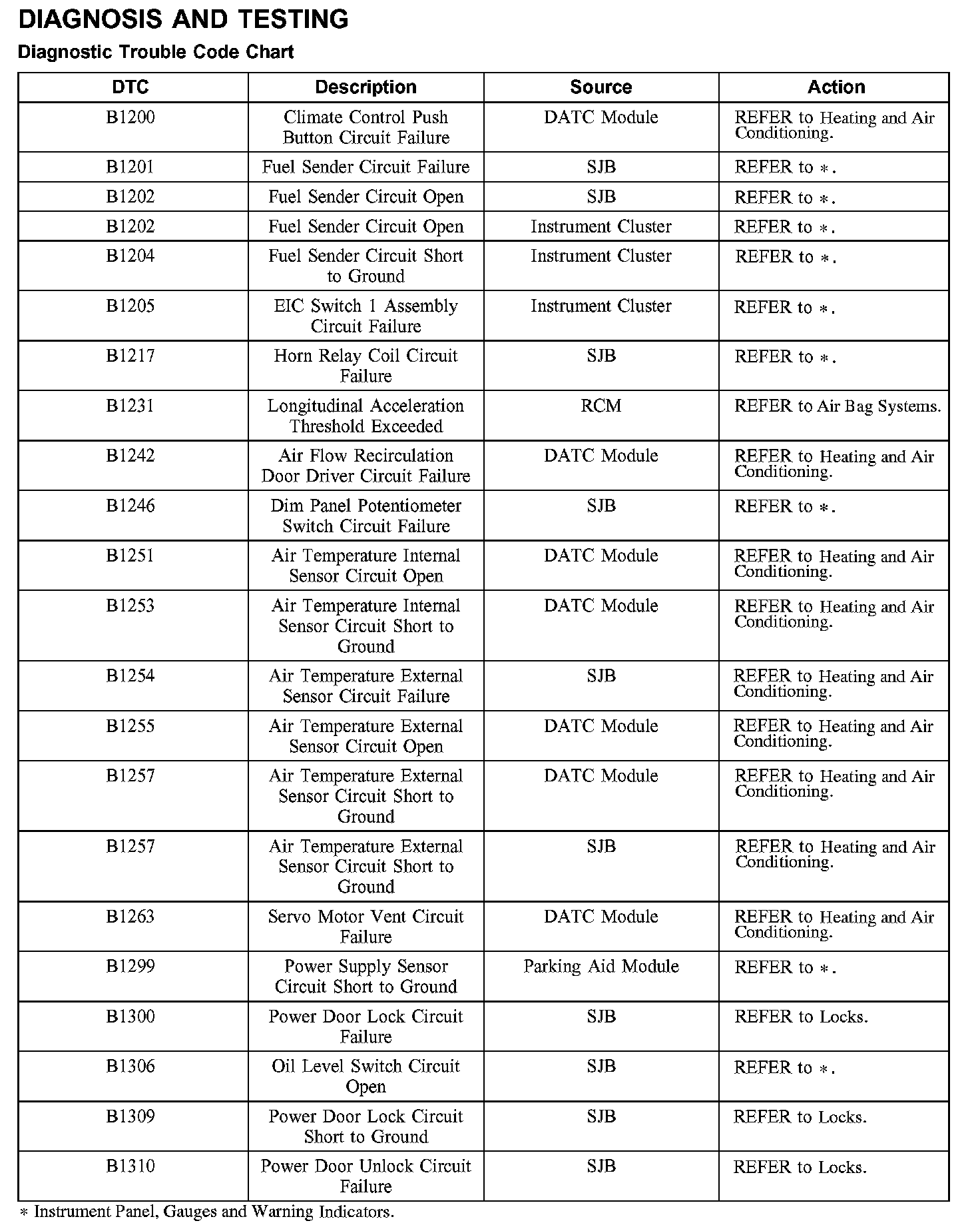 DIAGNOSTIC TROUBLE CODE CHARTDTC Chart B1200 - B1310: