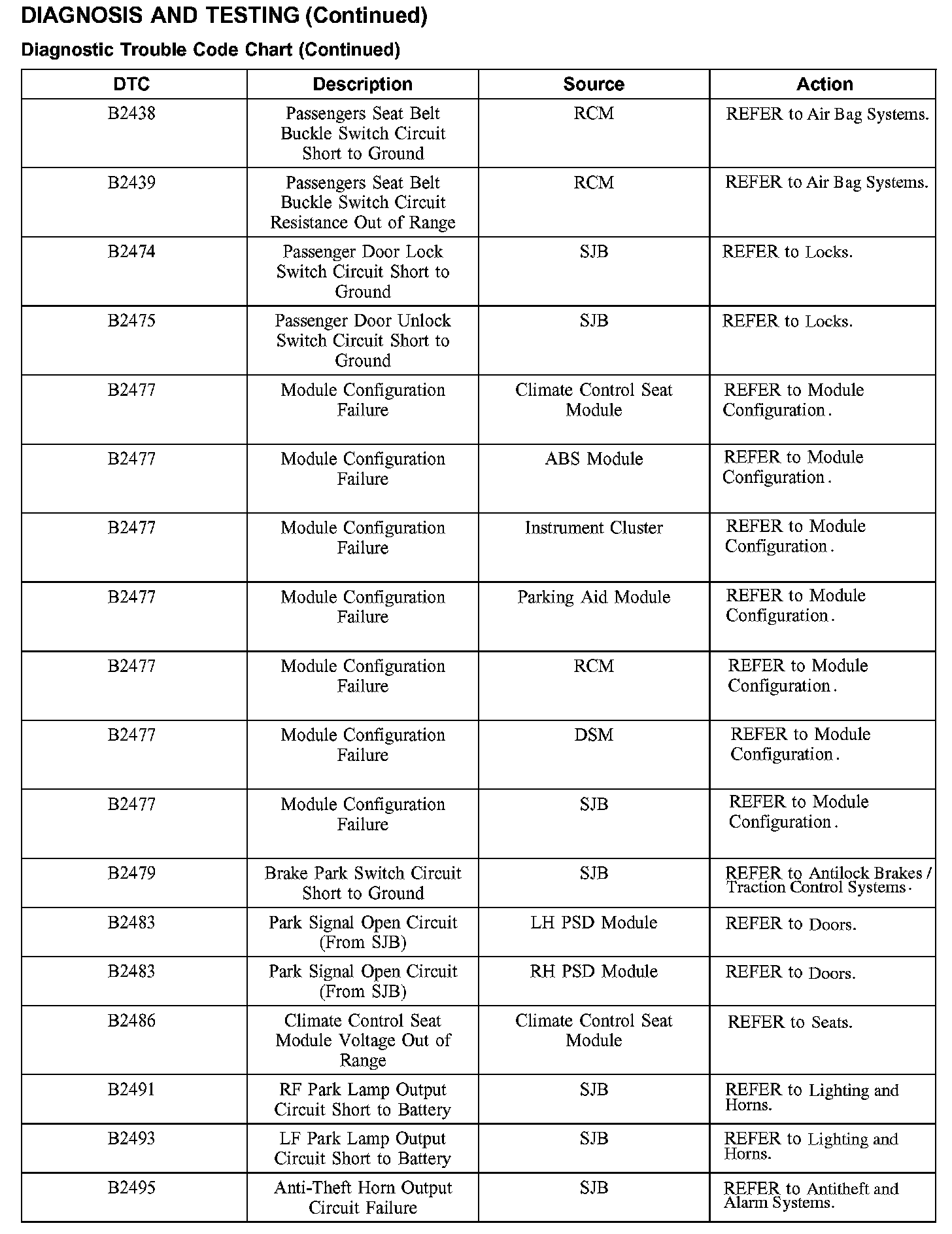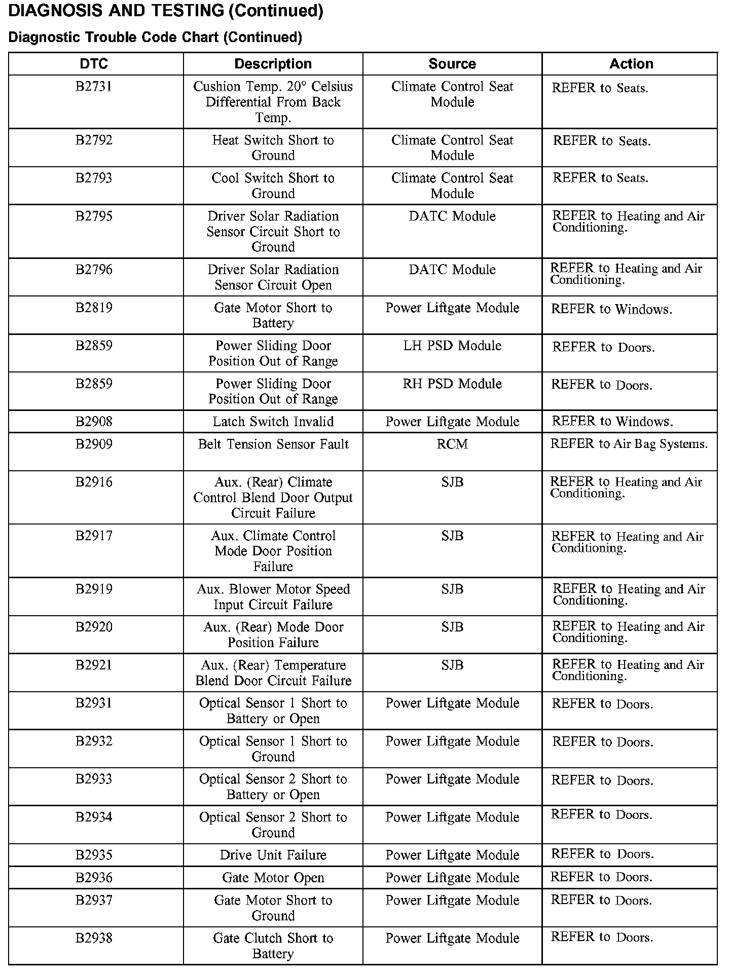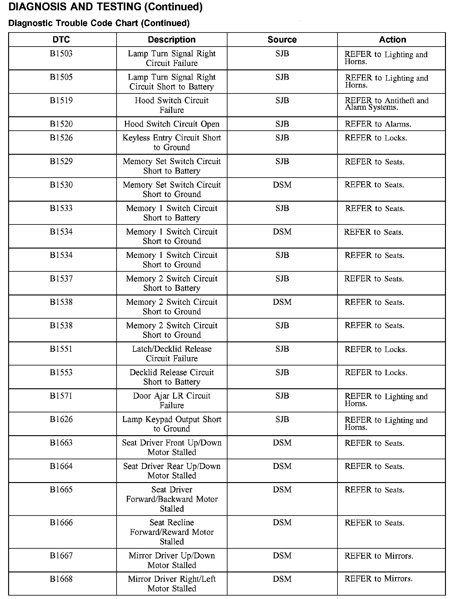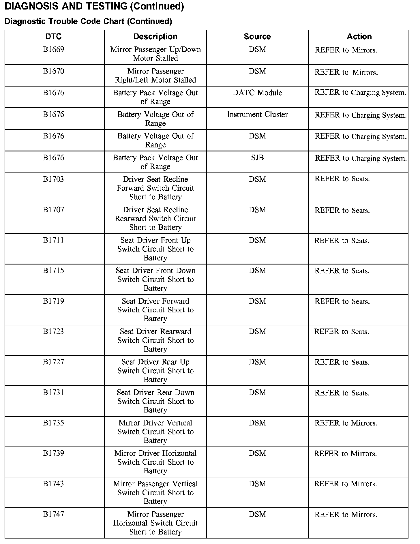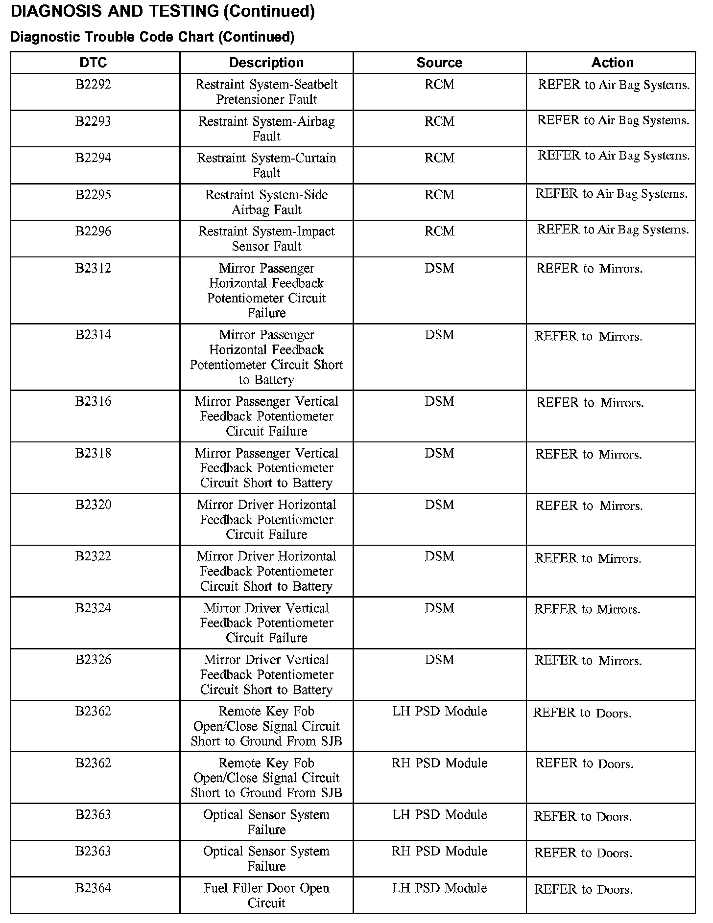 DIAGNOSTIC TROUBLE CODE CHARTDTC Chart B1200 - B1310: