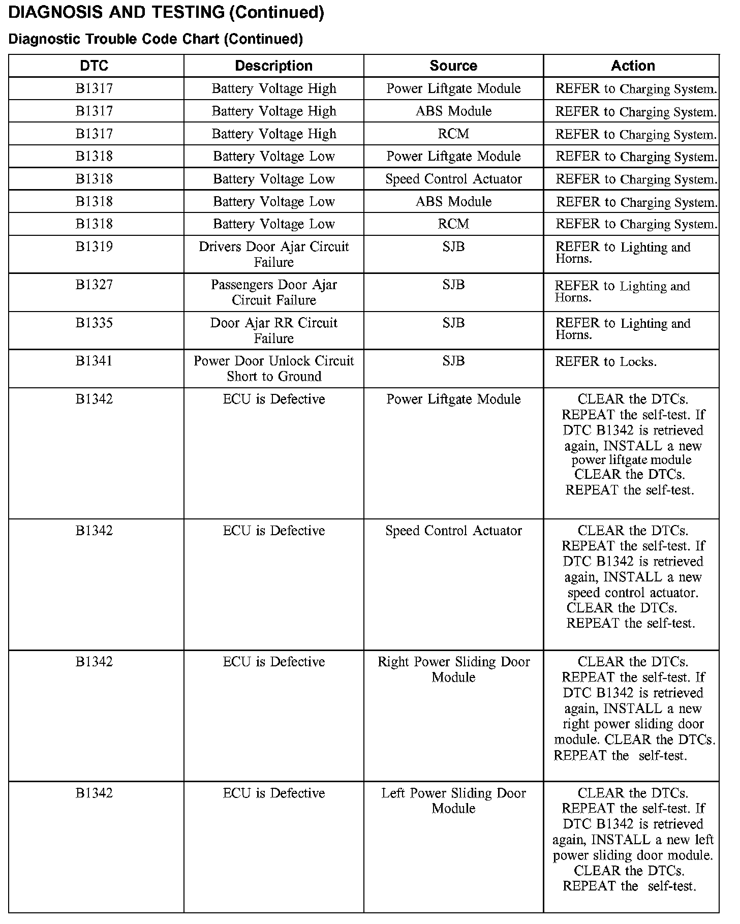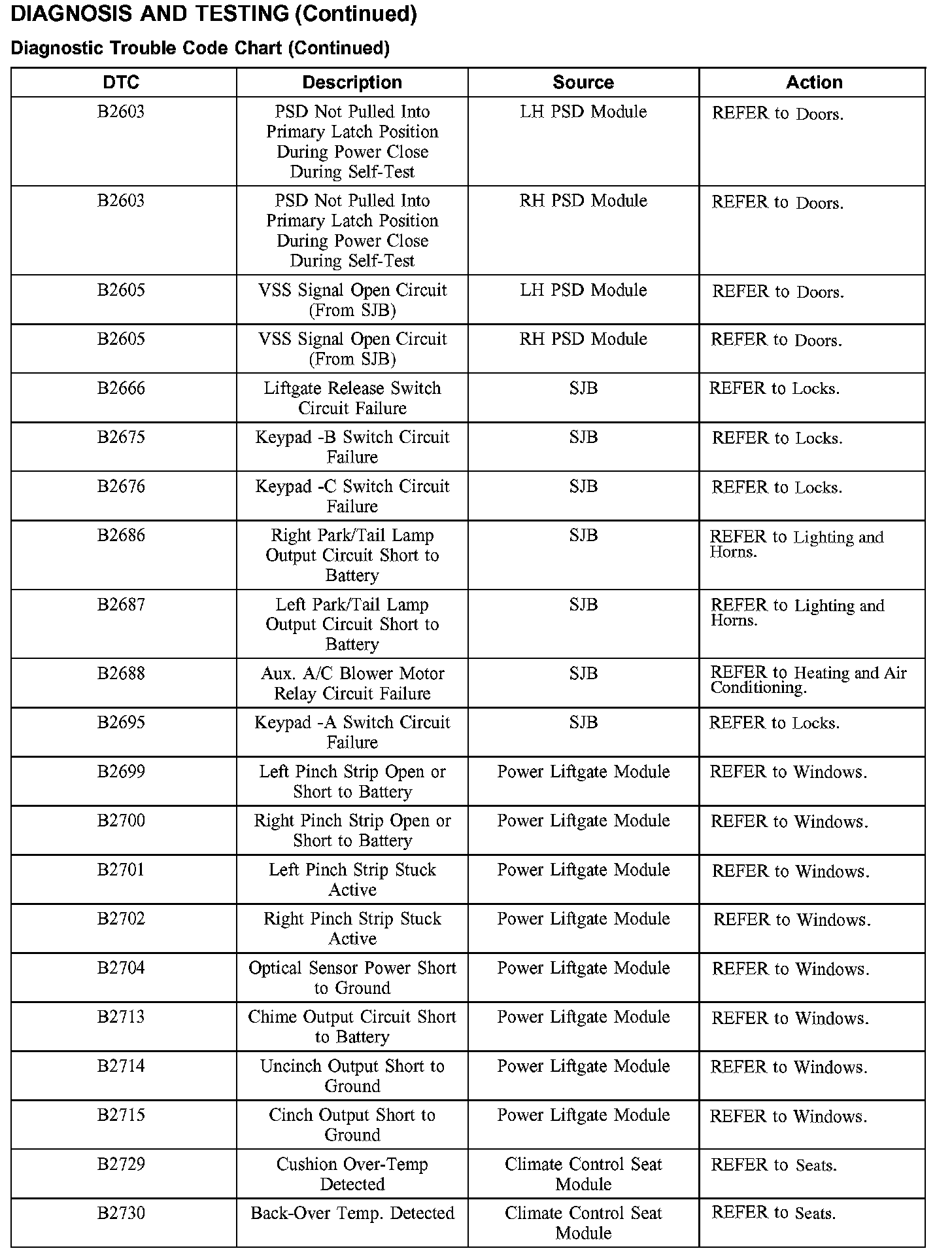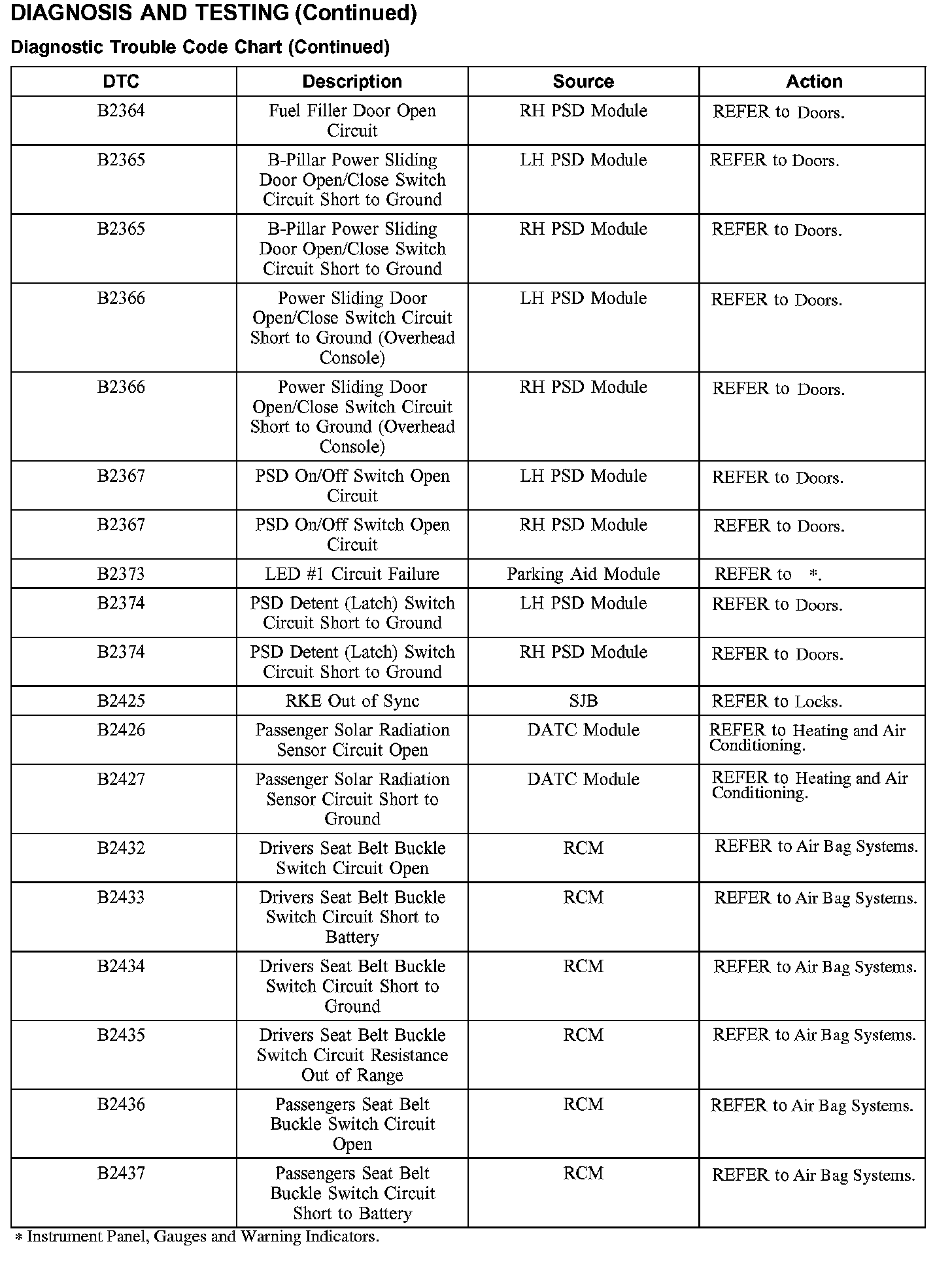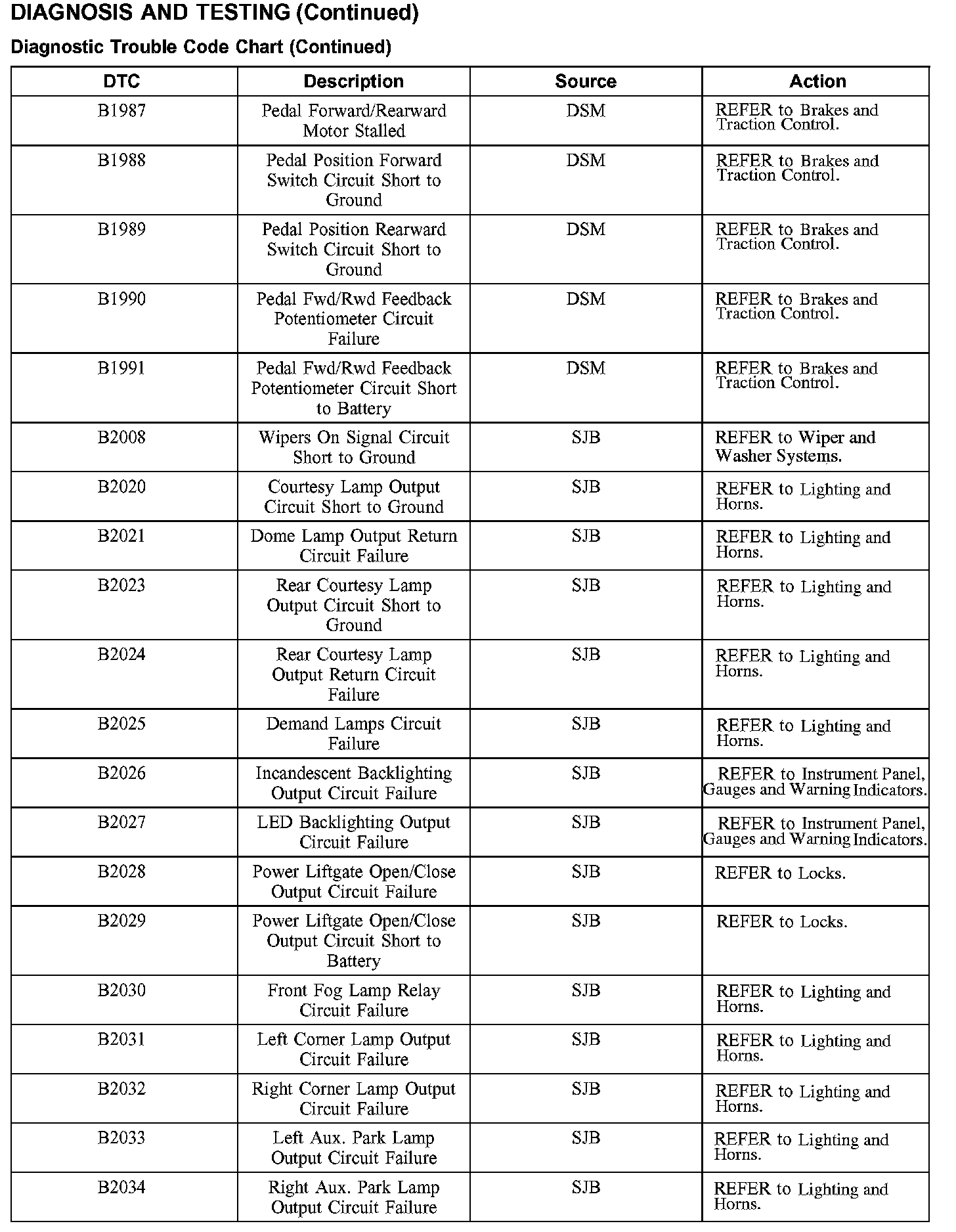 DIAGNOSTIC TROUBLE CODE CHARTDTC Chart B1200 - B1310: