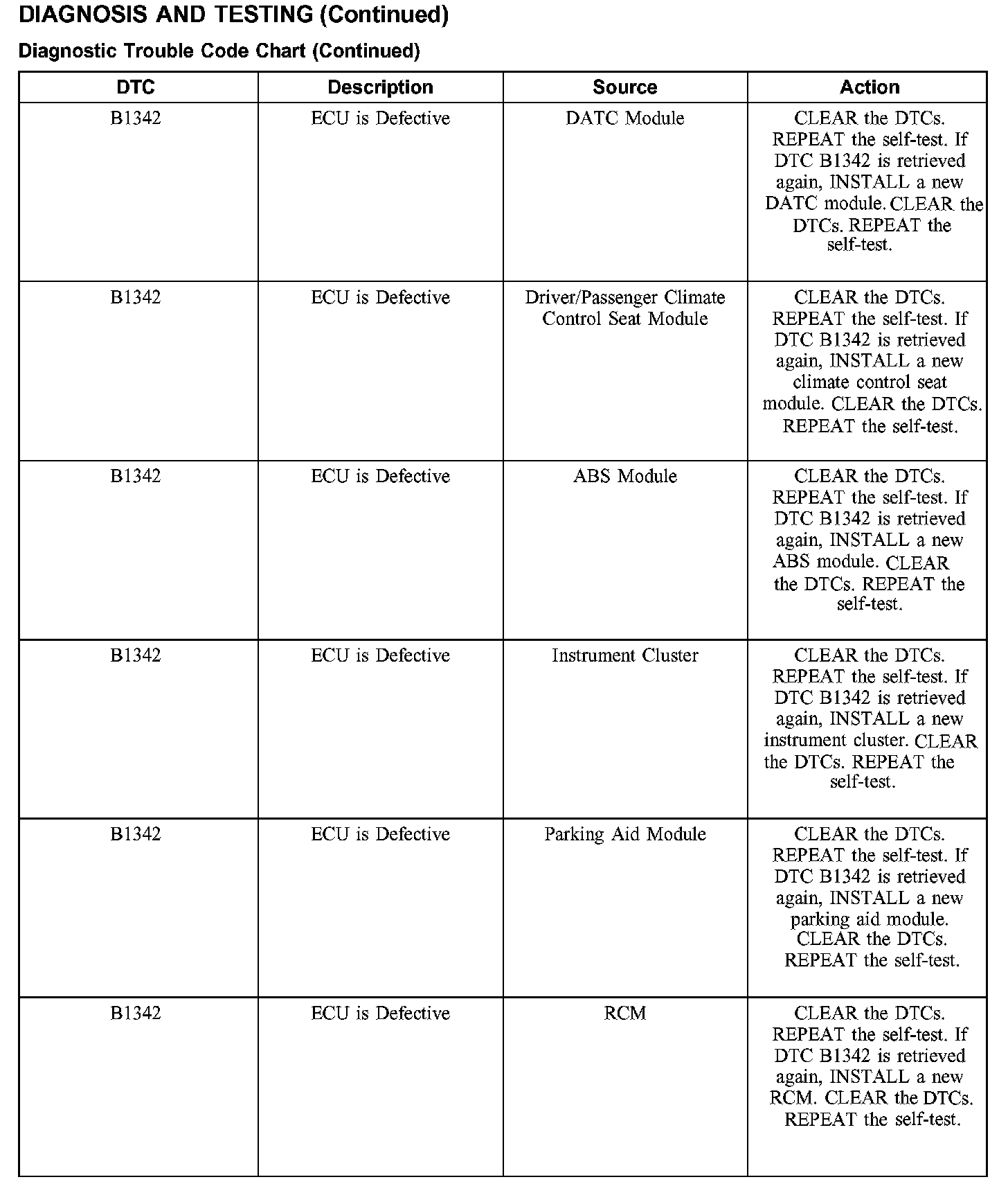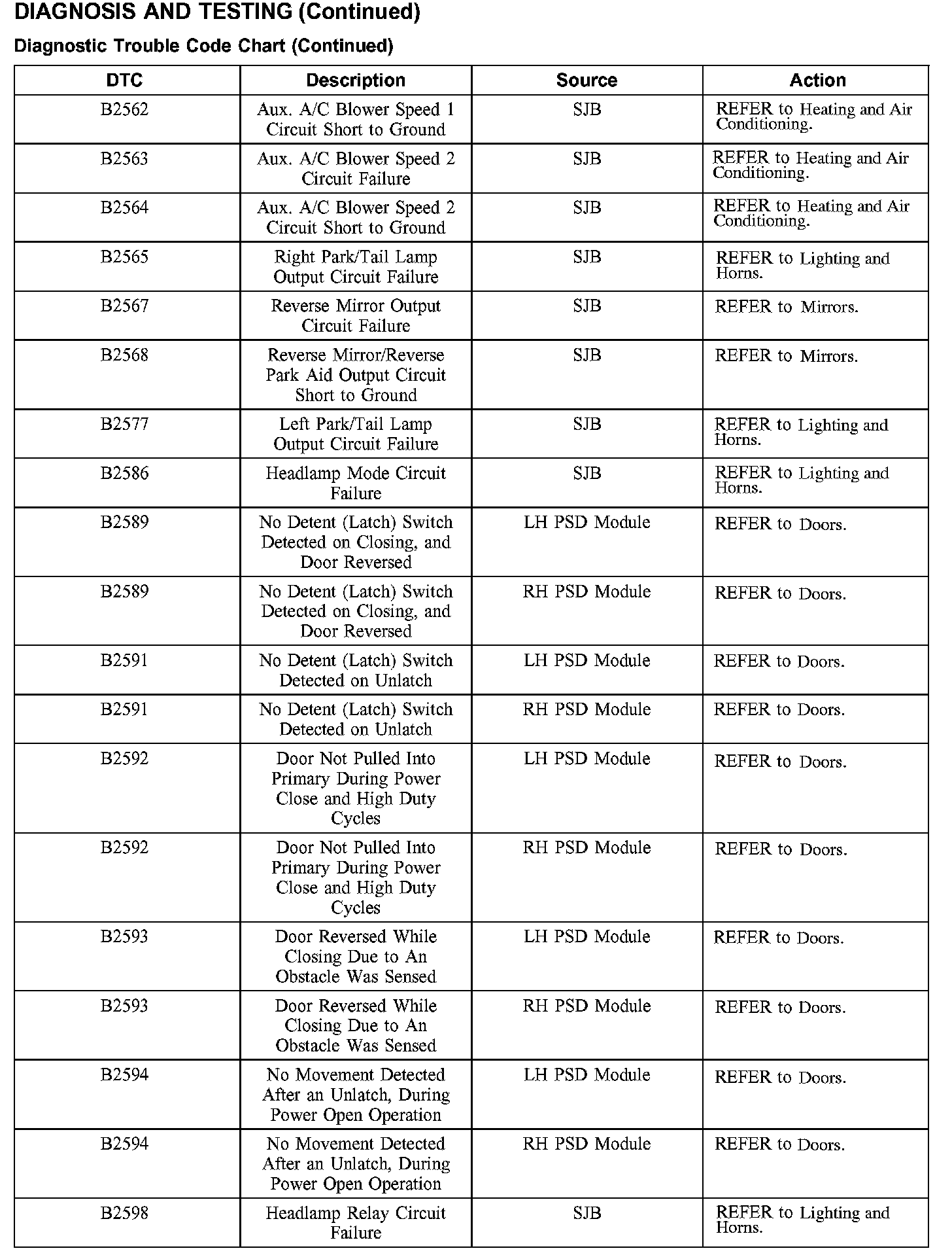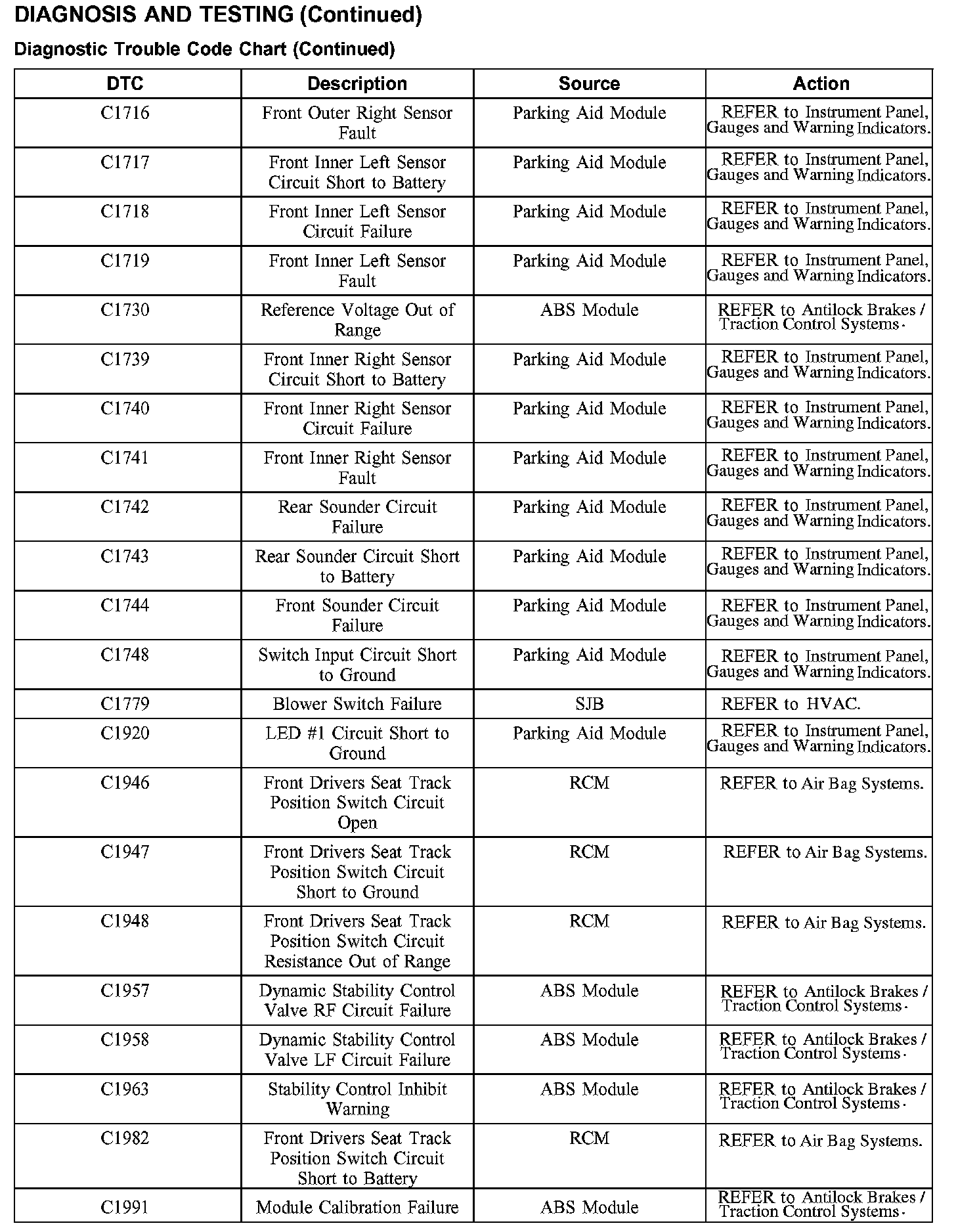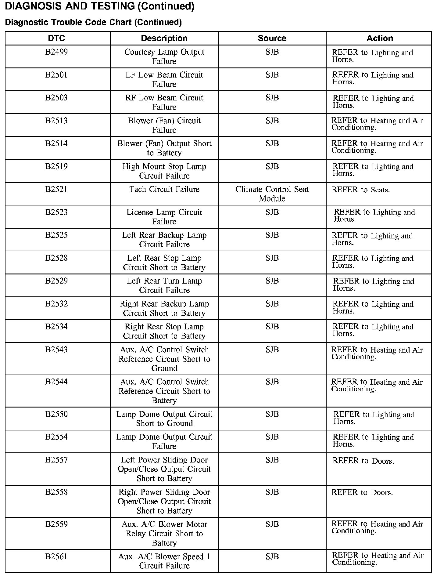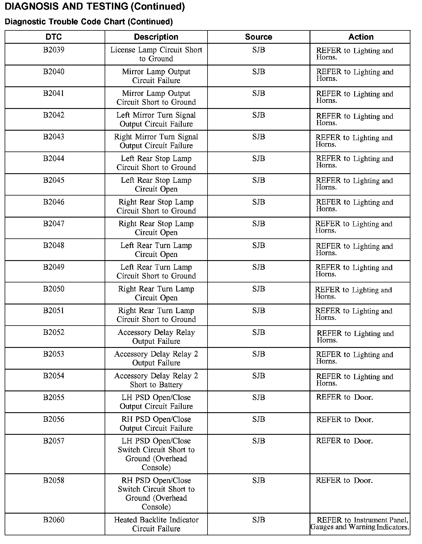 DIAGNOSTIC TROUBLE CODE CHARTDTC Chart B1200 - B1310:
