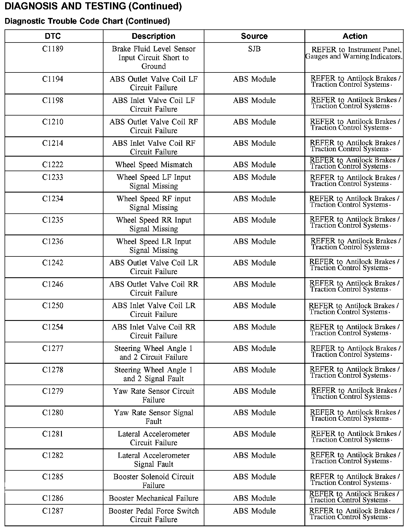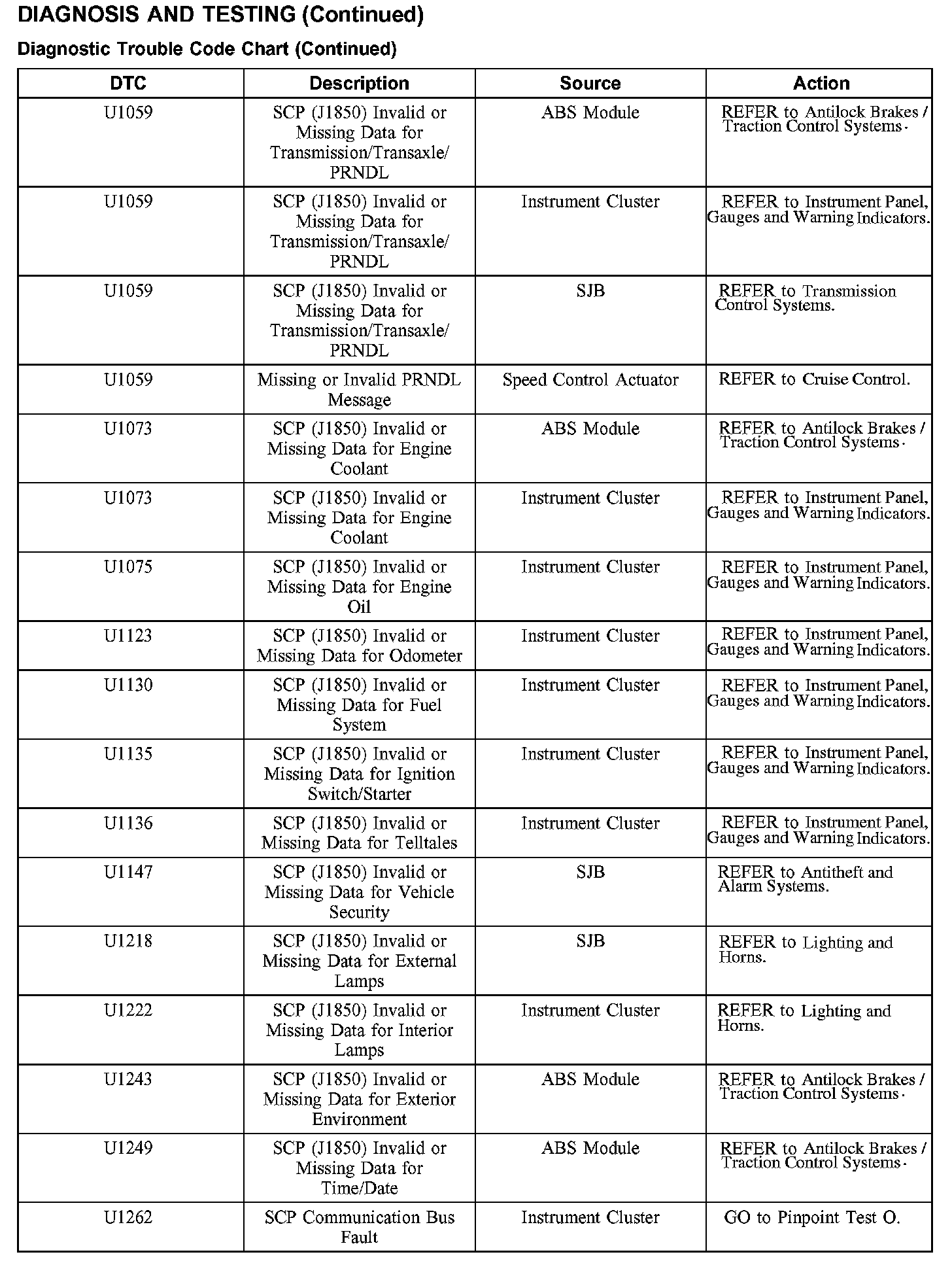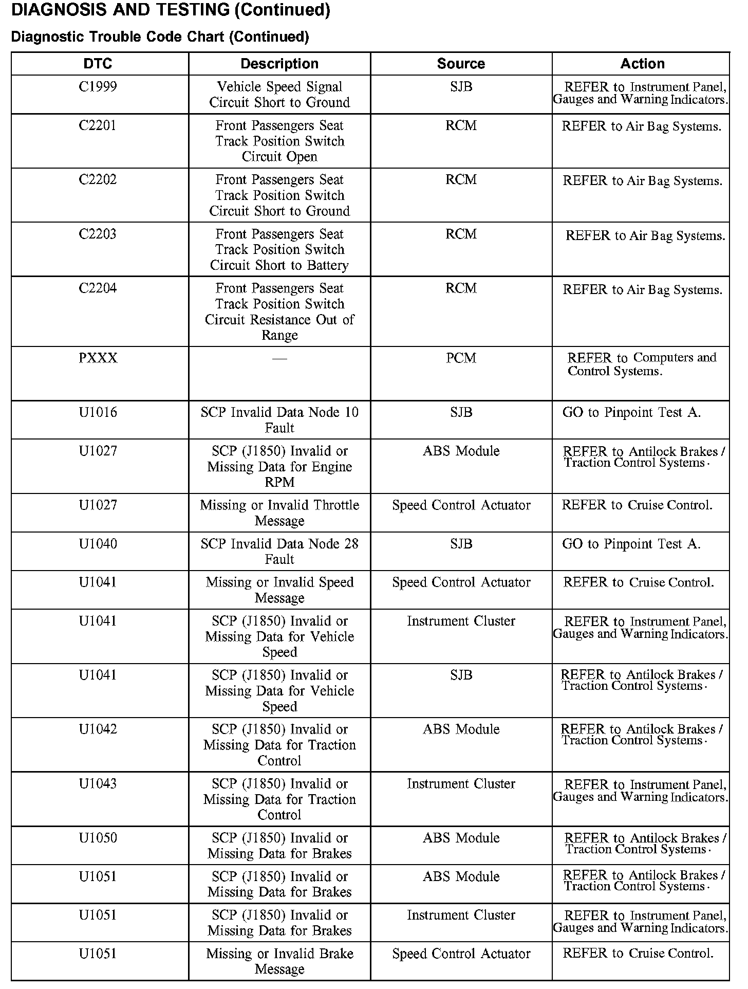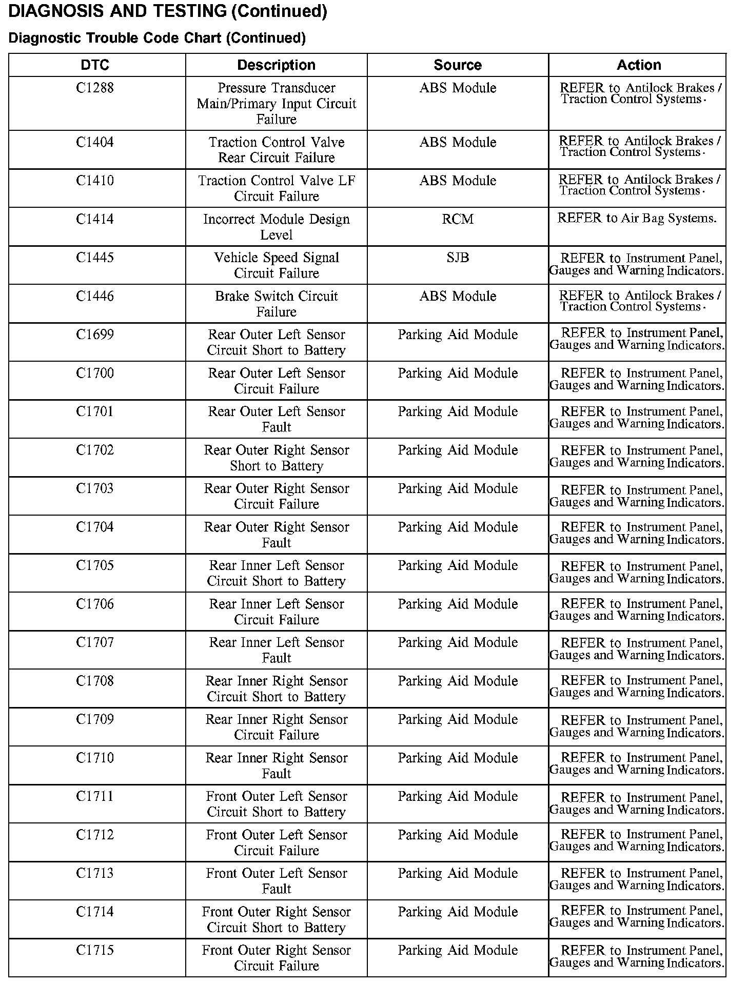 DIAGNOSTIC TROUBLE CODE CHARTDTC Chart B1200 - B1310: