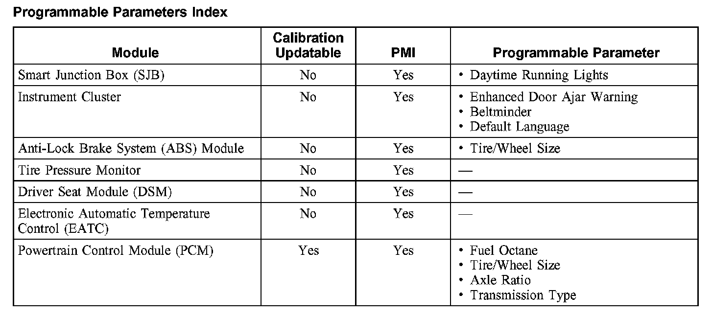 Programmable Parameters Index: