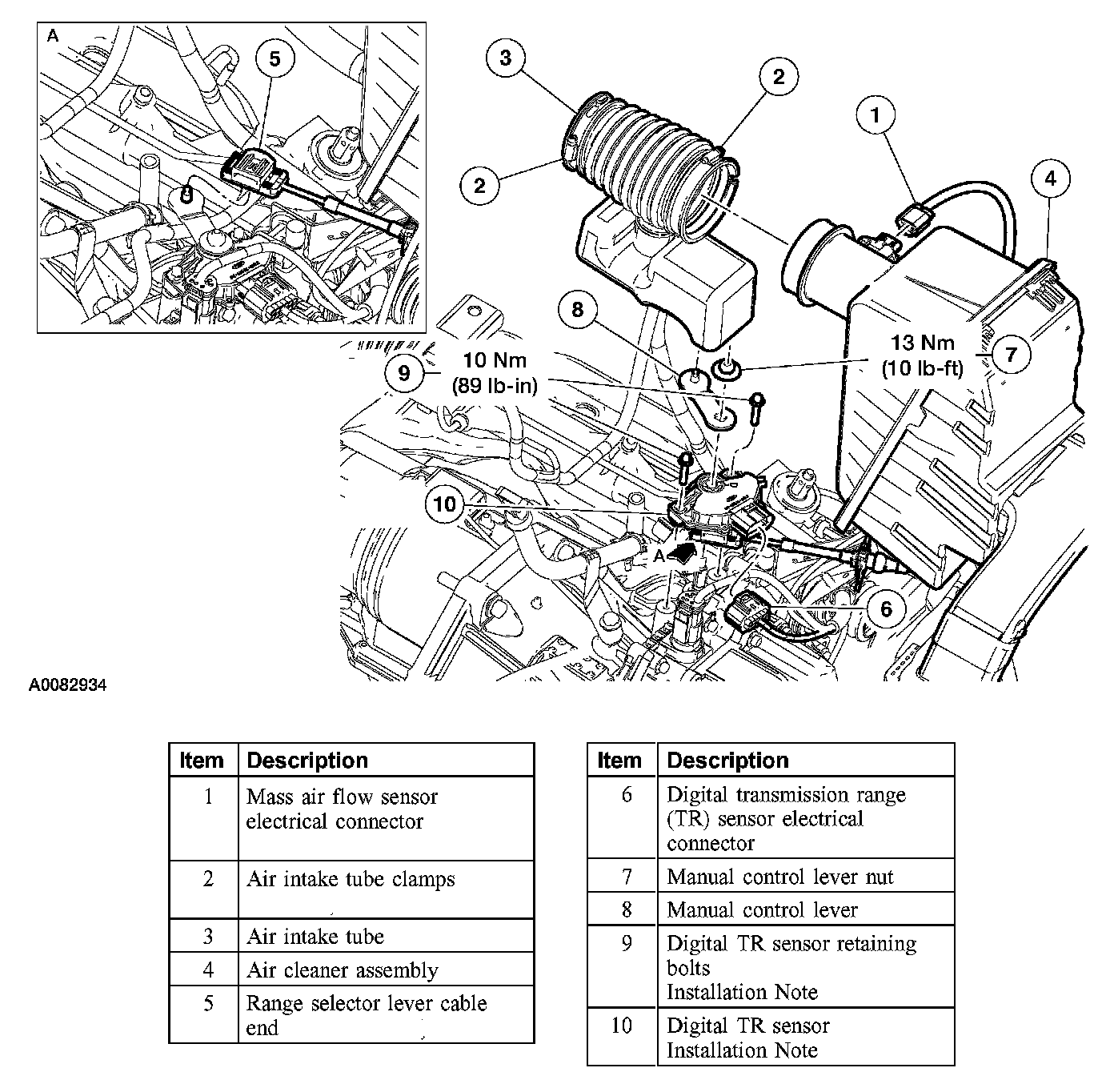 1. Install the digital TR sensor and loosely install the bolts.