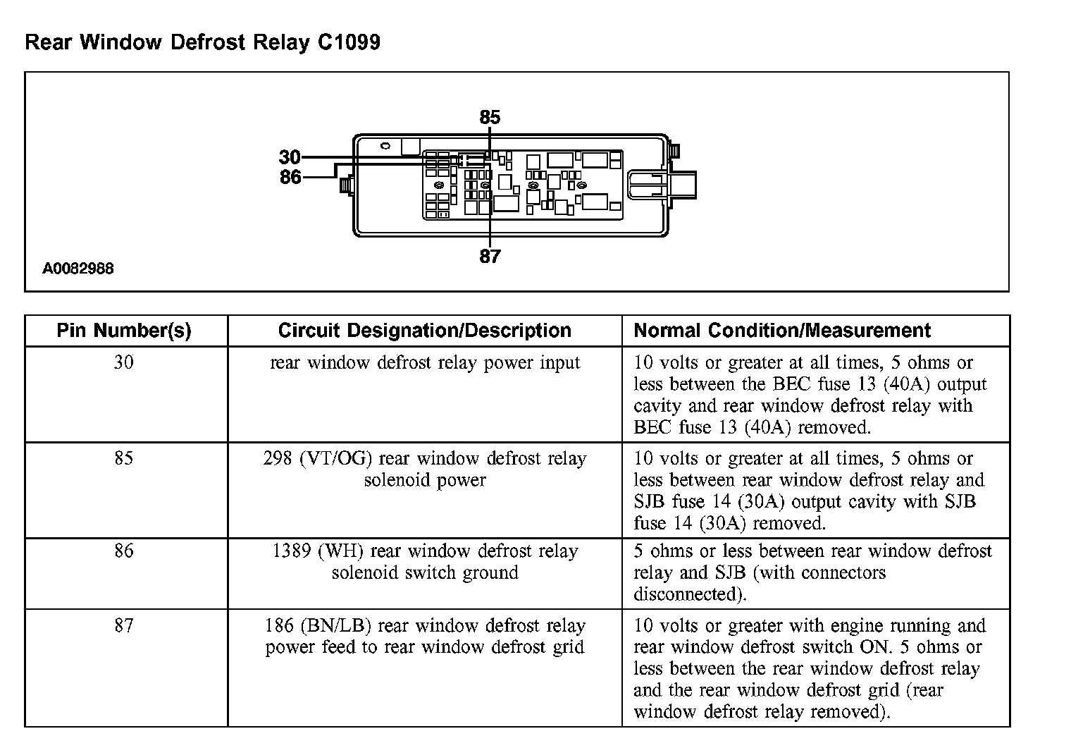 Rear Window Defrost Relay C1099: