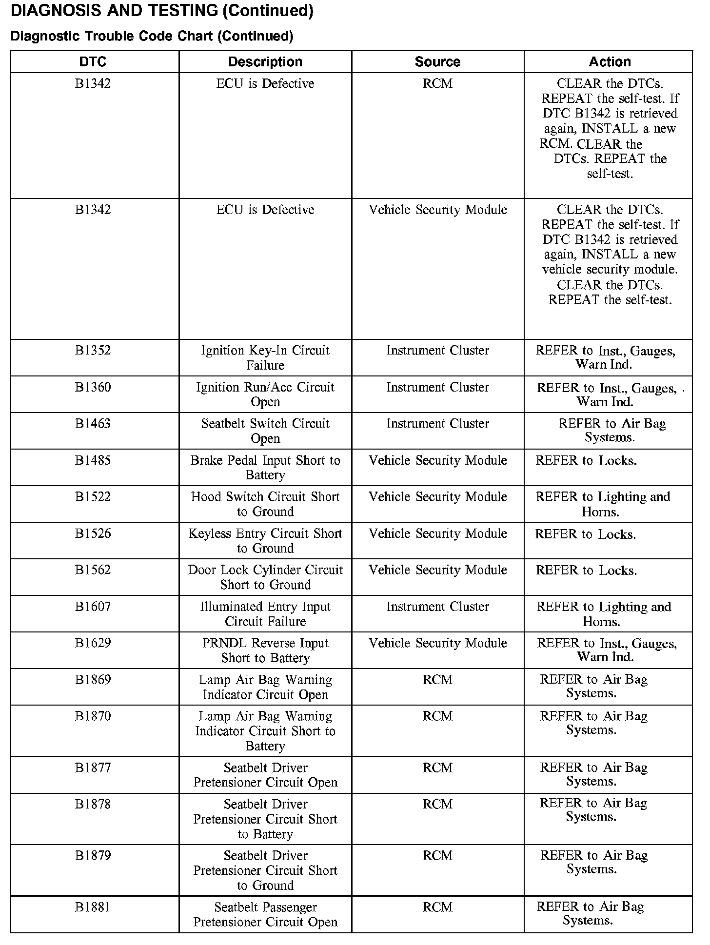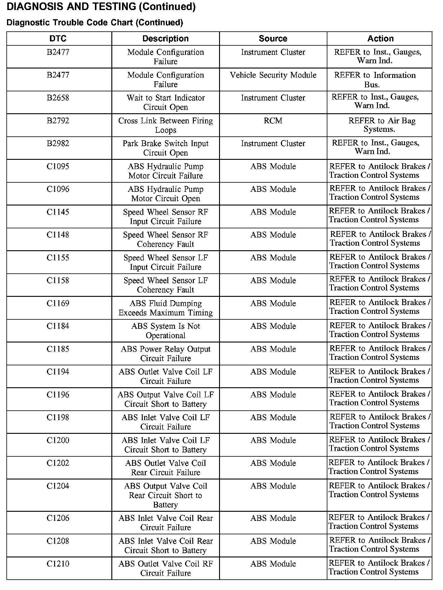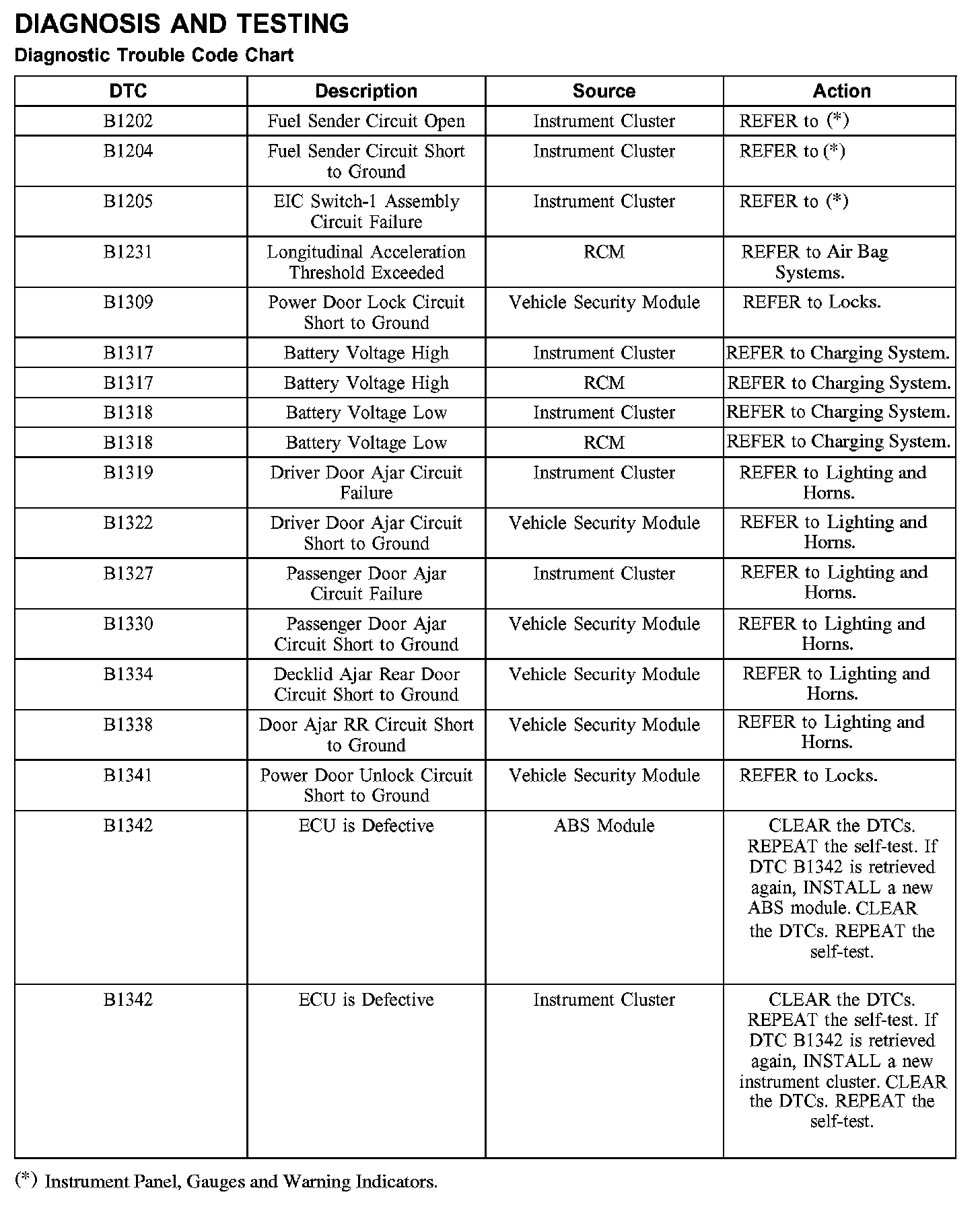 DIAGNOSTIC TROUBLE CODE CHART