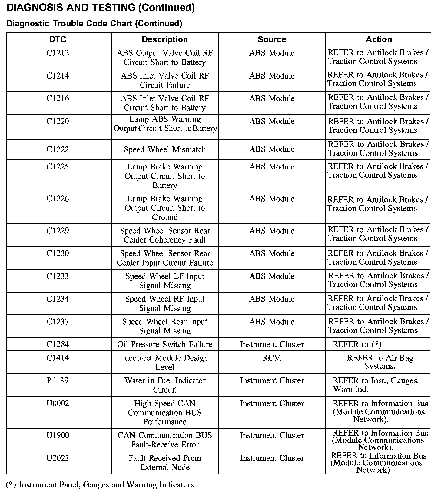 C1212-C1414 / P1139 / U0002-U2023: