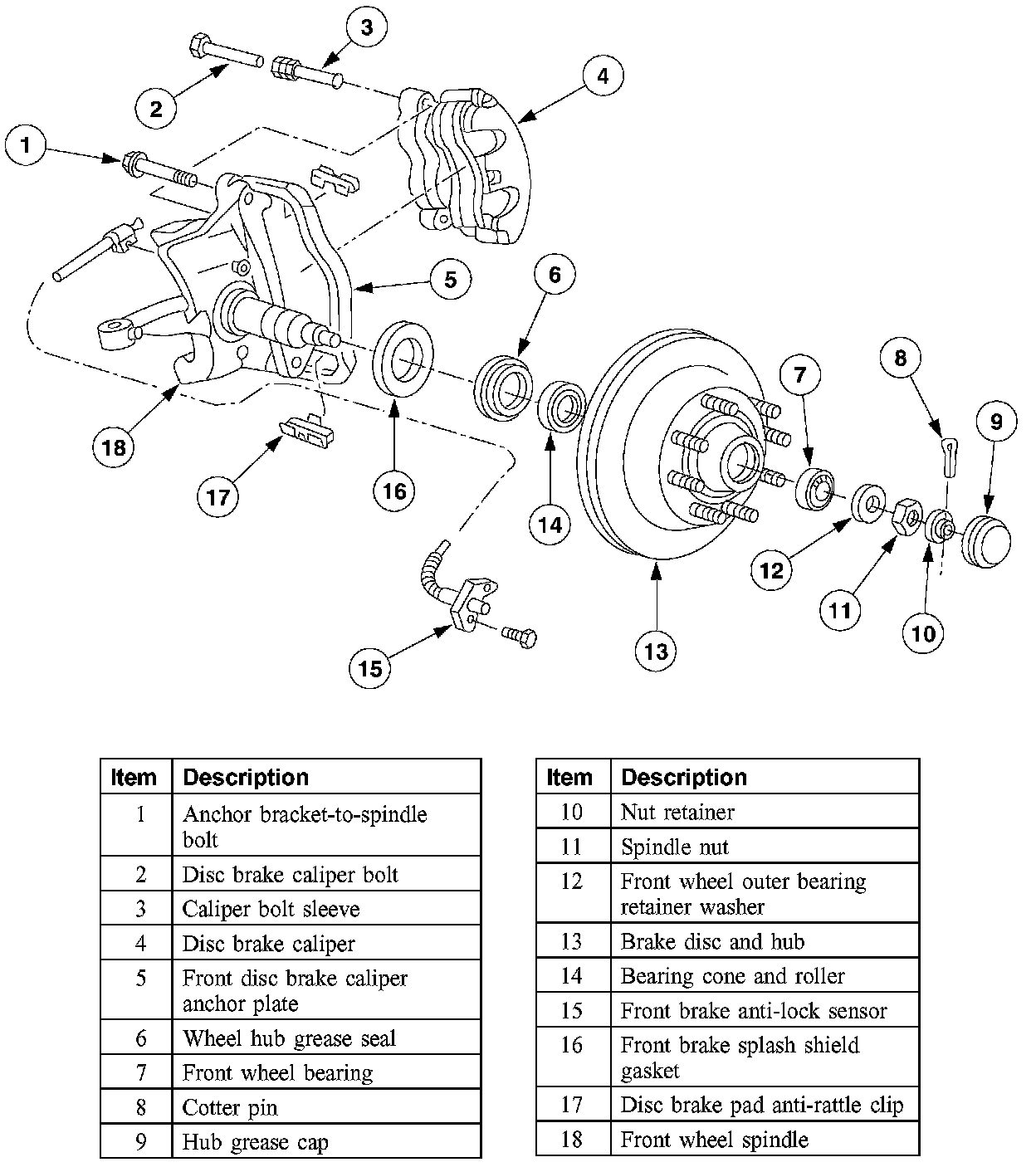 Front Disc Brake Components-E250, E350, Single Rear Wheel