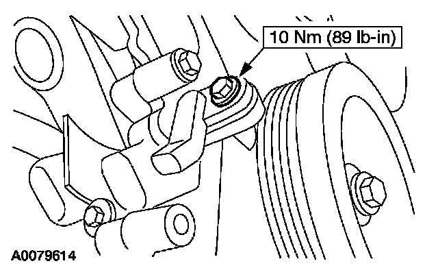 Loosen the bolts enough to slide the A/C compressor down one inch, allowing access for crankshaft position (CKP) sensor removal.