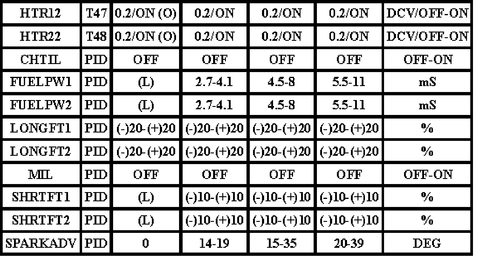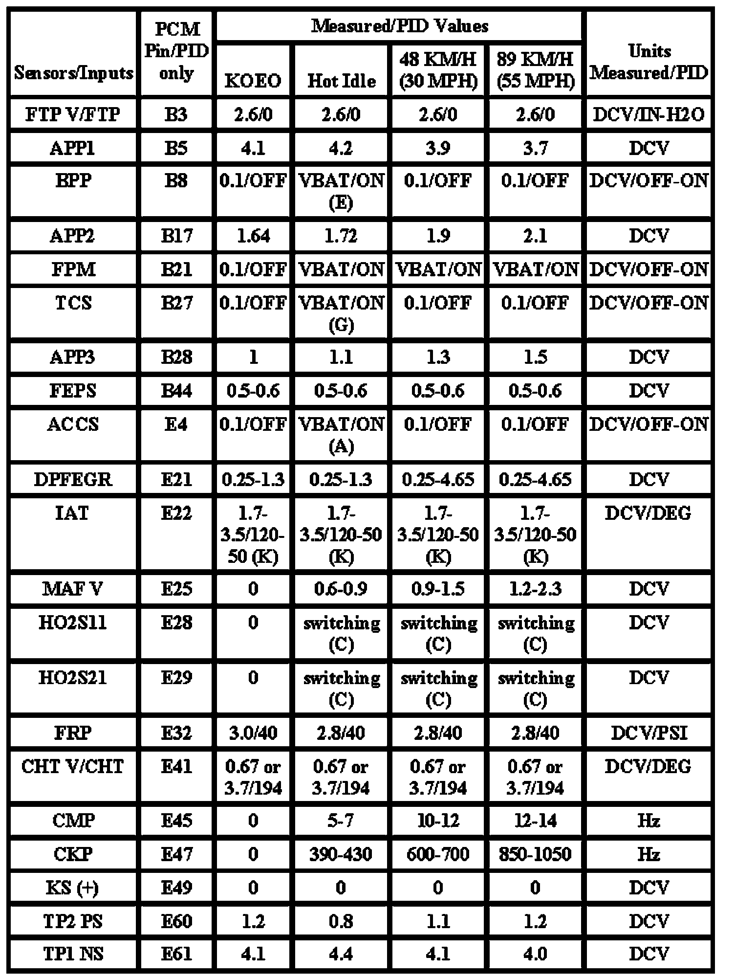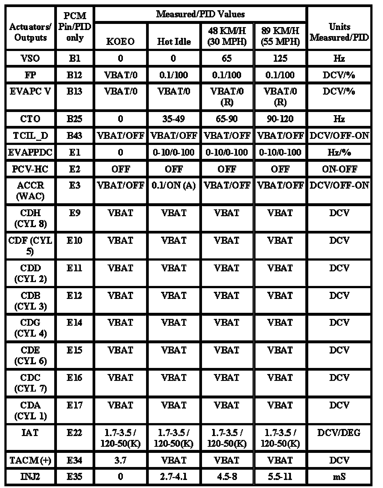 Note: All generic OBD readings under no load (PARK or NEUTRAL).