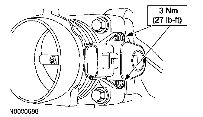 NOTE: When installing the new TP sensor, make sure that the radial locator tab on the TP sensor is aligned with the radial locator hole on the throttle body.