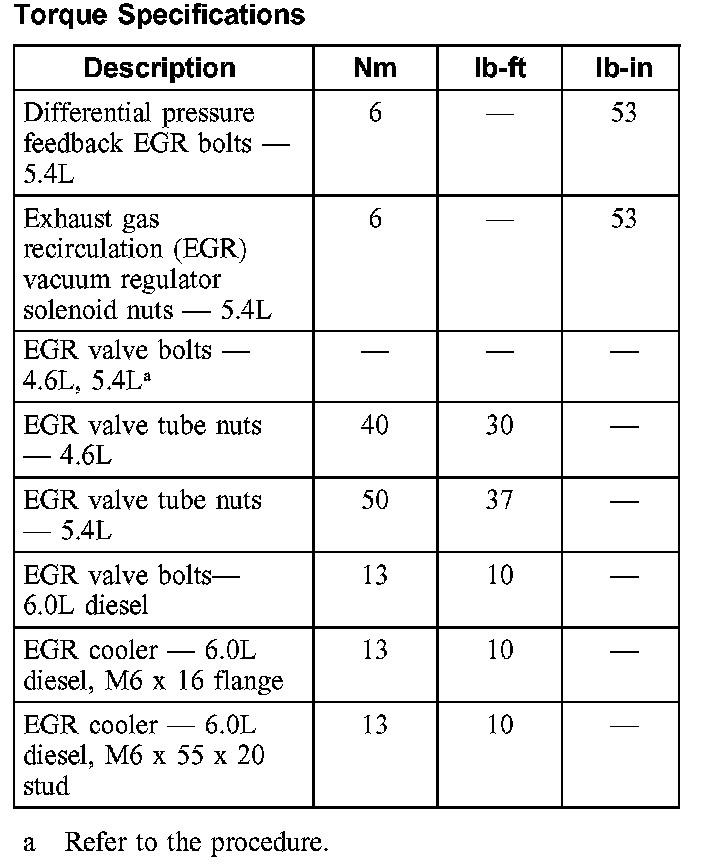 Torque Specifications: