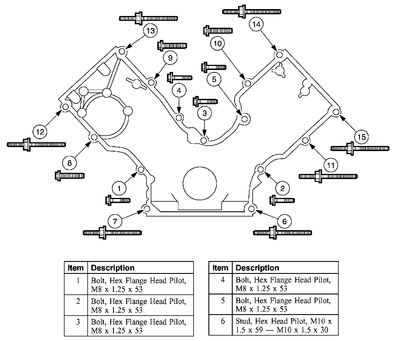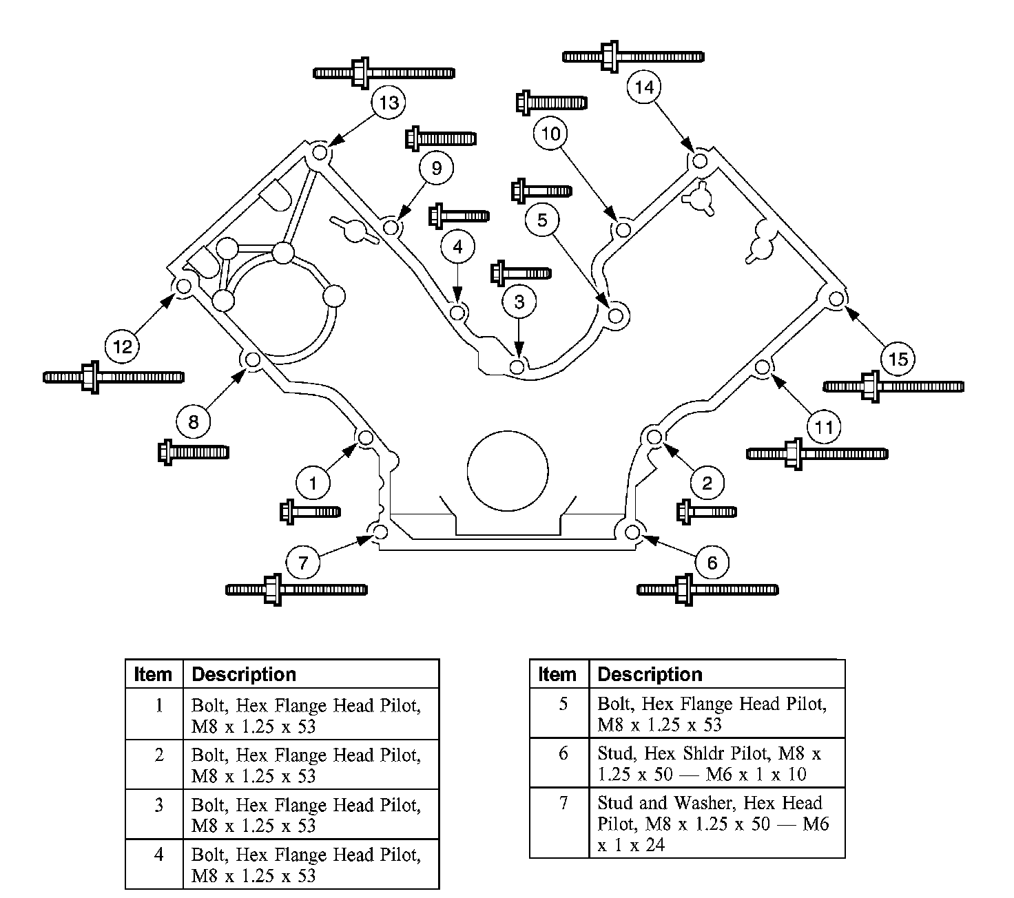 Stage 3: Tighten fasteners 8 through 15 to 48 Nm (35 ft. lbs.).