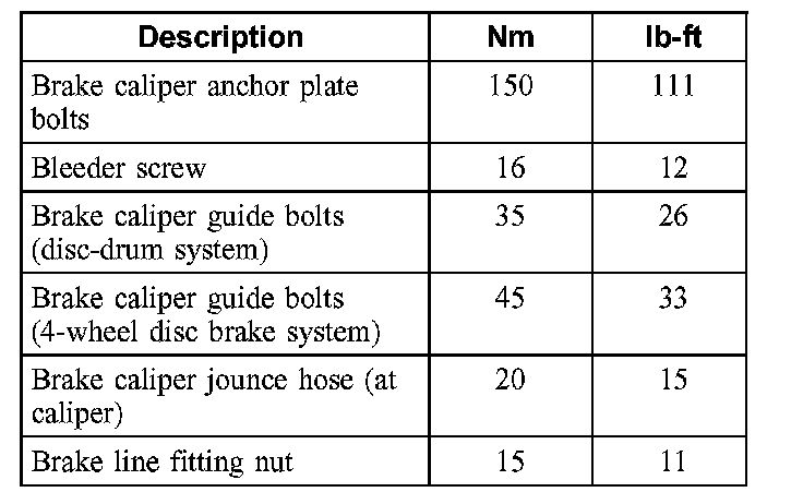 Torque Specifications, Front