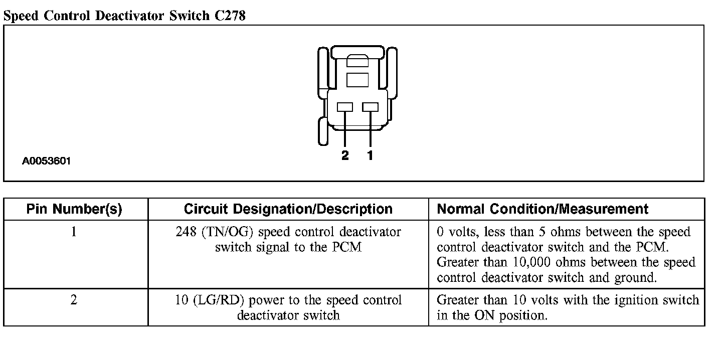 Speed Control Deactivator Switch C278: