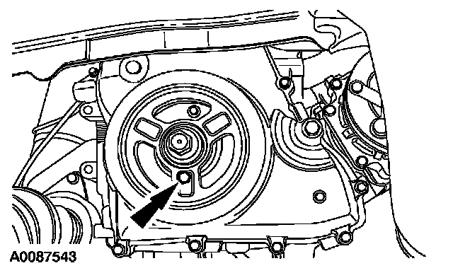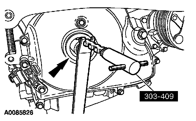 8. NOTE: The special tool will contact the crankshaft and prevent it from turning past TDC. However, the crankshaft can still be rotated in the counterclockwise direction. The crankshaft must remain at the TDC position until the timing drive components and crankshaft pulley are installed.