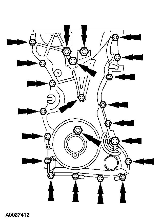 9. Install the engine front cover. Tighten the bolts in the sequence shown, to the following specifications: