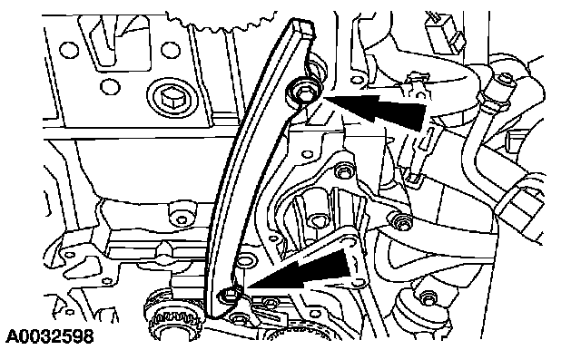 20. Remove the bolts and the LH timing chain guide.