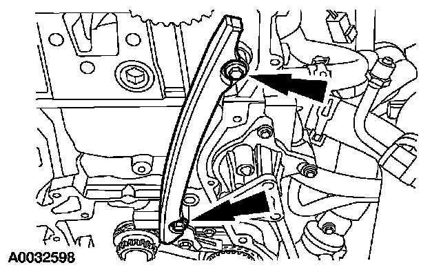 2. Install the LH timing chain guide and the bolts.