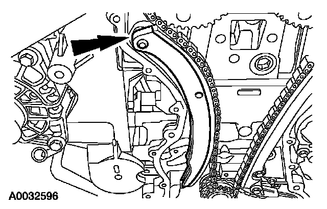 1. Compress the timing chain tensioner, and insert a paper clip into the hole to retain the tensioner.