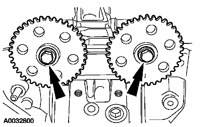 1. Install the camshaft sprockets and the bolts. Do not tighten the bolts at this time.